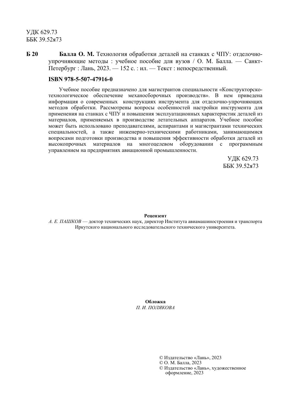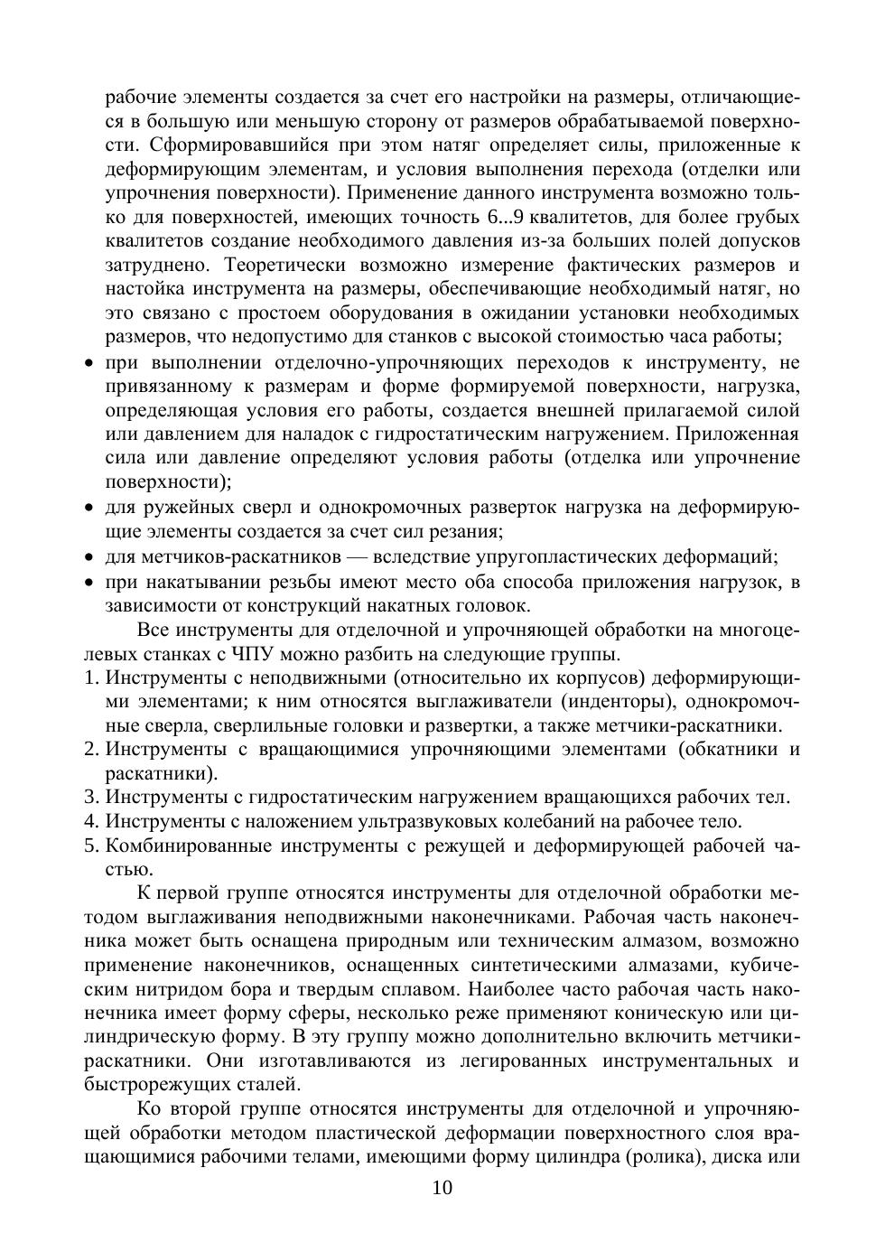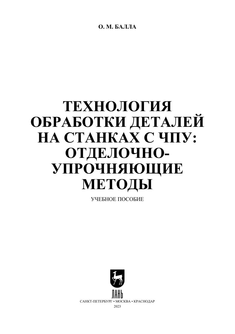Учебное пособие предназначено для магистрантов специальности «Конструкторско-технологическое обеспечение механосборочных производств». В нем приведена информация о современных конструкциях инструмента для отделочно-упрочняющих методов обработки. Рассмотрены вопросы особенностей настройки инструмента для применения на станках с ЧПУ и повышения эксплуатационных характеристик деталей из материалов, применяемых в производстве летательных аппаратов. Учебное пособие может быть использовано преподавателями, аспирантами и магистрантами технических специальностей, а также инженерно-техническими работниками, занимающимися вопросами подготовки производства и повышения эффективности обработки деталей из высокопрочных материалов на многоцелевом оборудовании с программным управлением на предприятиях авиационной промышленности.
