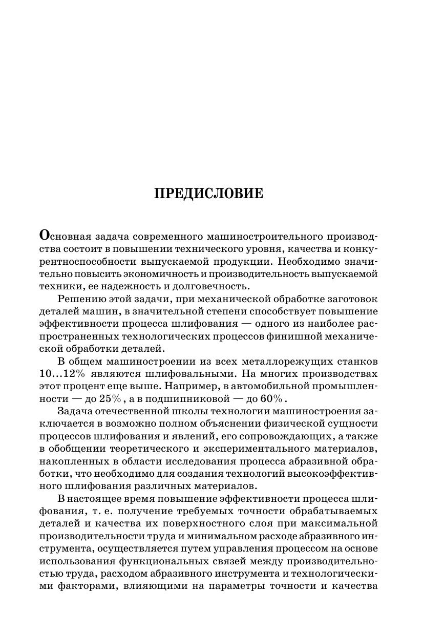 В книге излагаются основные сведения о состоянии и развитии технологии высокоэффективного шлифования различных материалов (сталей, сплавов, сверхтвердых материалов и др.). Обосновываются технологические преимущества увеличения скорости резания. Приводятся данные о кинематике и динамике процесса, особенности стружкообразования и геометрии срезаемого слоя материала, износе и стойкости шлифовальных кругов, оценке их работоспособности, качестве металла поверхностного слоя. Даны технологические характеристики рассматриваемых методов обработки, их возможности и область применения. Предназначена для студентов и аспирантов технических вузов, а также для научных и инженерно-технических работников машиностроительных специальностей.