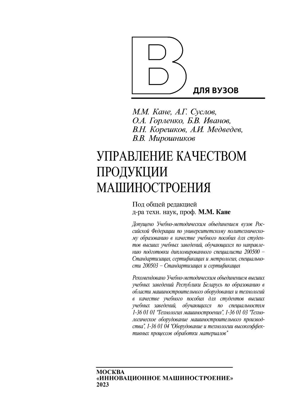 Управление качеством продукции машиностроения