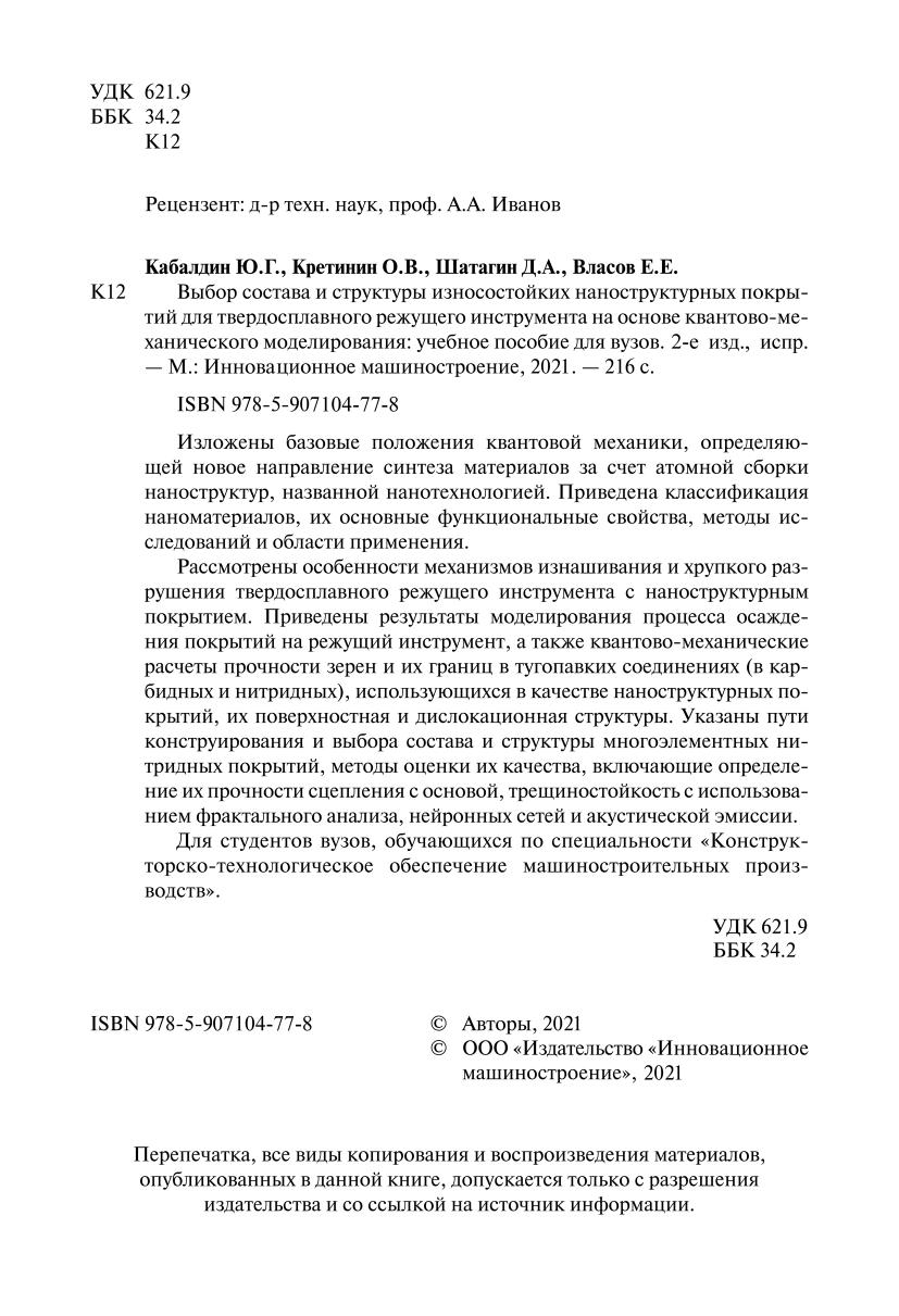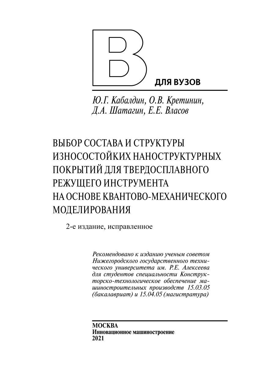 Авторы: Кабалдин Ю. Г., Кретинин О. В., Шатагин Д. А., Власов Е. Е.