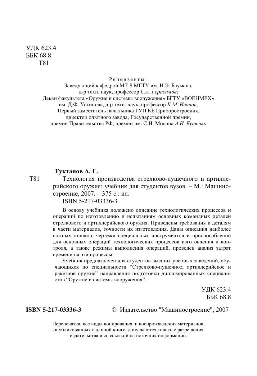 Гриф: Допущено Министерством образования и науки Российской Федерации в качестве учебника для студентов высших учебных заведений, обучающихся по специальности «Стрелково-пушечное, артиллерийское и ракетное оружие» направления подготовки дипломированных специалистов «Оружие и системы вооружения»