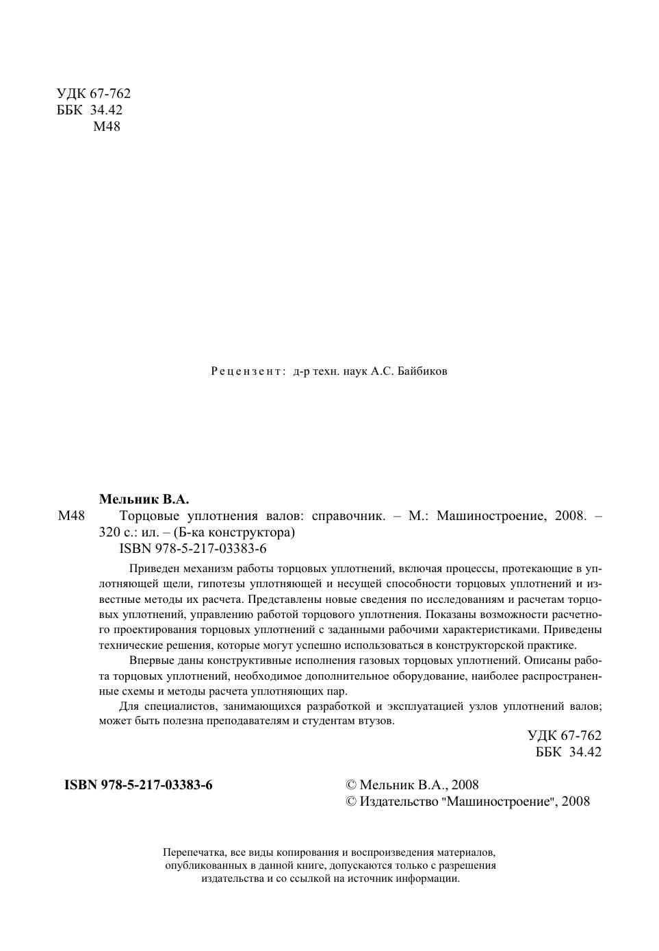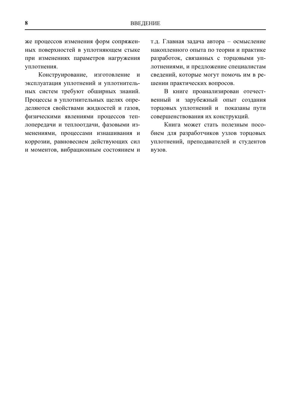 Приведен механизм работы торцовых уплотнений, включая процессы, протекающие в уплотняющей щели, гипотезы уплотняющей и несущей способности торцовых уплотнений и известные методы их расчета. Представлены новые сведения по исследованиям и расчетам торцовых уплотнений, управлению работой торцового уплотнения. Показаны возможности расчетного проектирования торцовых уплотнений с заданными рабочими характеристиками. Приведены технические решения, которые могут успешно использоваться в конструкторской практике. Впервые даны конструктивные исполнения газовых торцовых уплотнений. Описаны работа торцовых уплотнений, необходимое дополнительное оборудование, наиболее распространенные схемы и методы расчета уплотняющих пар. Для специалистов, занимающихся разработкой и эксплуатацией узлов уплотнений валов может быть полезна преподавателям и студентам втузов.