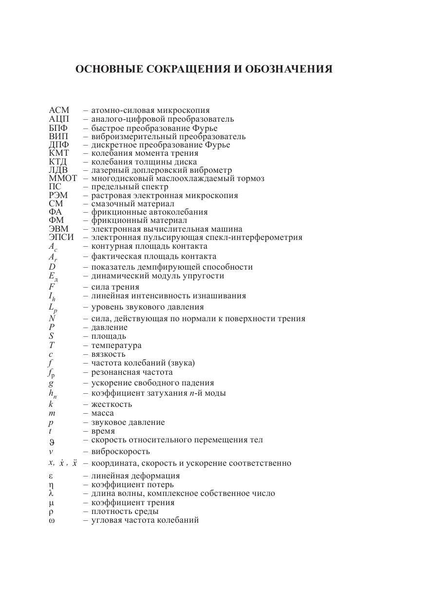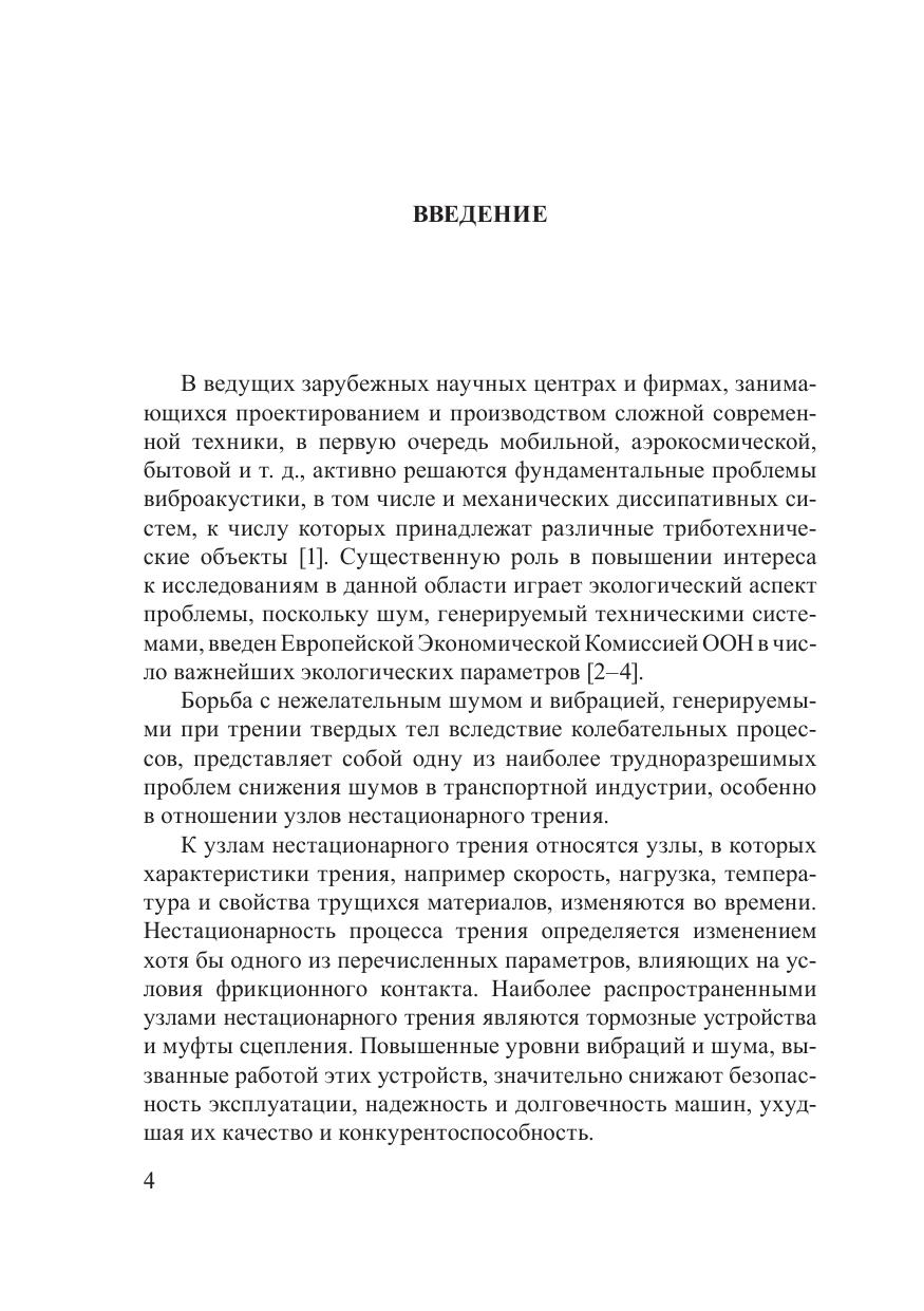 Изложены основы колебательных процессов и теоретические аспекты механизмов возникновения шума и вибрации в системах с трением. Обобщены имеющиеся литературные данные, а также результаты исследований авторов в области виброакустики фрикционных узлов трения, в первую очередь тормозов и трансмиссий машин, создания и применения композиционных материалов с улучшенными виброакустическими характеристиками. Рассмотрены основные подходы к снижению вибрации и шума в нестационарных процессах трения. Особое внимание уделено материаловедческим аспектам улучшения виброакустических характеристик трибосопряжений. Предназначена для научных и инженерно-технических работников, специализирующихся в области машиностроения, эксплуатации различных транспортных систем и сертификации продукции, а также будет полезна студентам и аспирантам, изучающим проблемы трения и виброакустики.