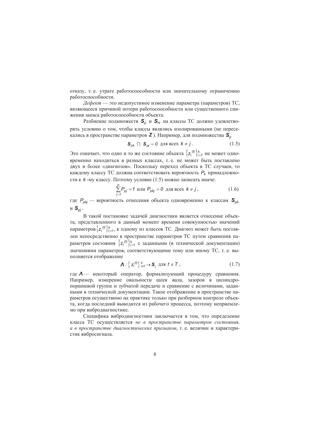 Рассмотрены теоретические основы и практические аспекты вибродиагностики как развивающихся, так и развитых эксплуатационных дефектов, а также принципы оценки технического состояния промышленных роторных машин.