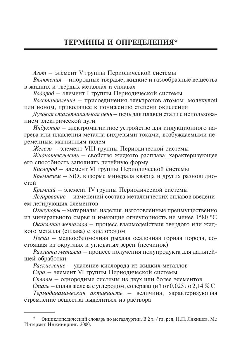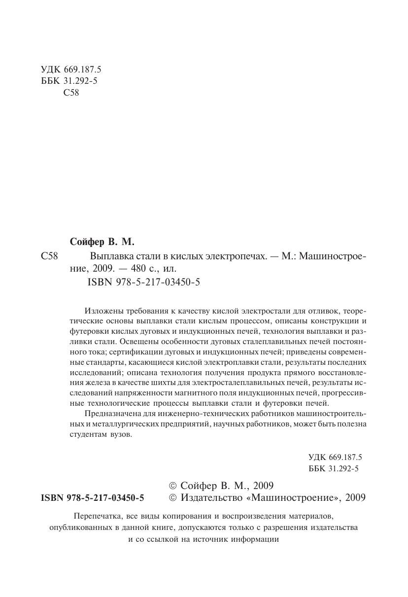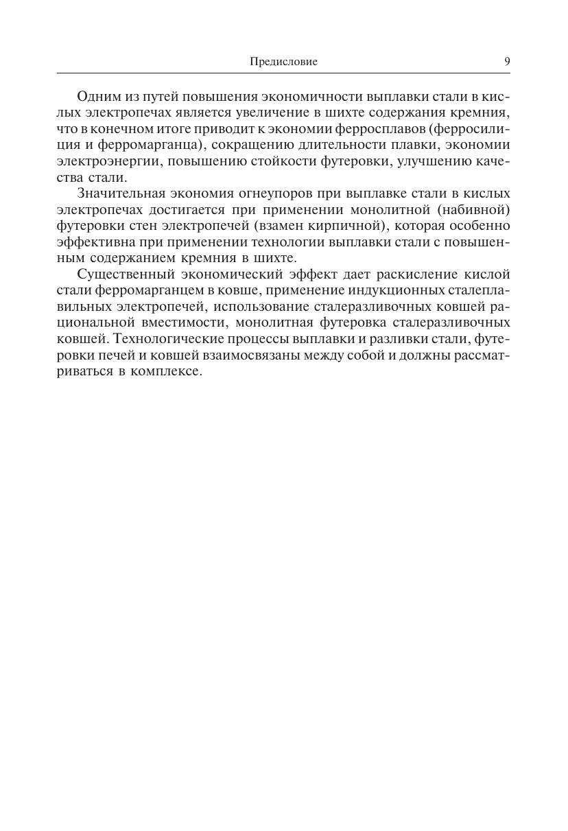 Изложены требования к качеству кислой электростали для отливок, теоретические основы выплавки стали кислым процессом, описаны конструкции и футеровки кислых дуговых и индукционных печей, технология выплавки и разливки стали. Освещены особенности дуговых сталеплавильных печей постоянного тока сертификации дуговых и индукционных печей приведены современные стандарты, касающиеся кислой электроплавки стали, результаты последних исследований описана технология получения продукта прямого восстановления железа в качестве шихты для электросталеплавильных печей, результаты исследований напряженности магнитного поля индукционных печей, прогрессивные технологические процессы выплавки стали и футеровки печей. Предназначена для инженерно-технических работников машиностроительных и металлургических предприятий, научных работников, может быть полезна студентам вузов.