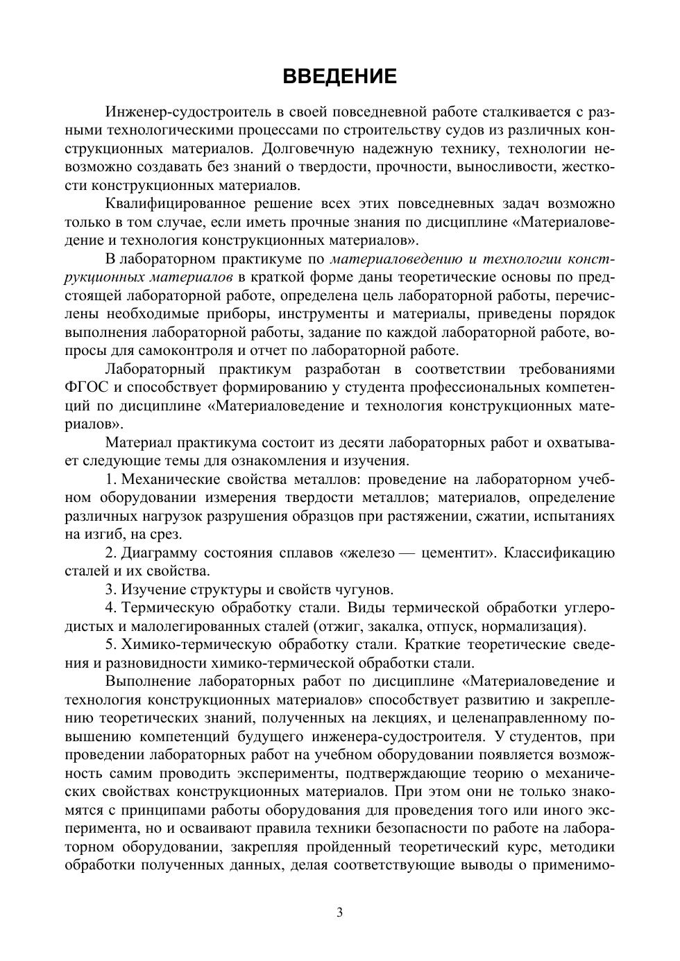 Лабораторный практикум является составной частью учебного процесса, предназначенного для закрепления теоретического материала и приобретения практических навыков по определению механических свойств материалов, технологии получения заданных параметров у конструкционных материалов. В пособии приведены методические указания по проведению лабораторных работ и оформлению отчета по каждой лабораторной работе Предназначено для студентов очного и заочного обучения инженерных специальностей, связанных с проектированием, постройкой, ремонтом кораблей, судов и объектов океанотехники.