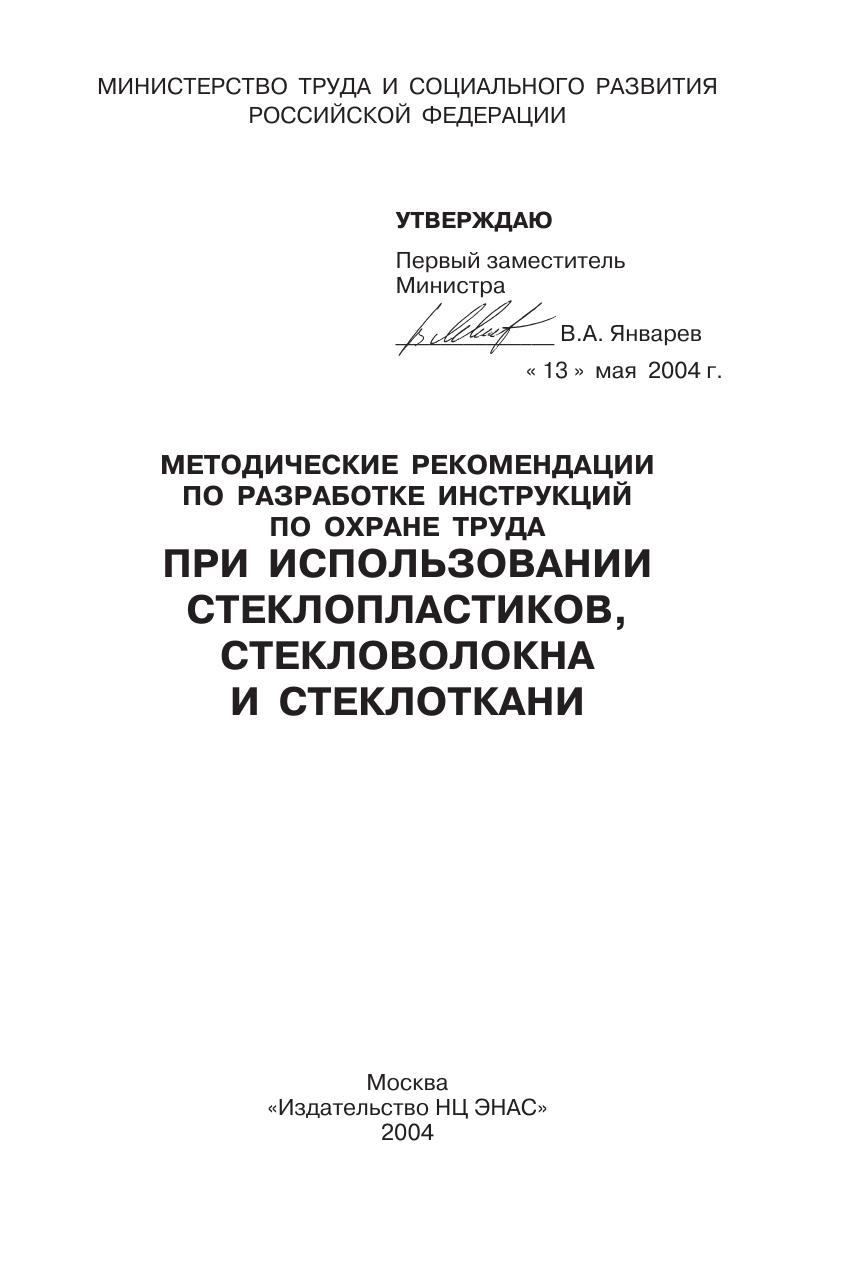 Методические рекомендации по разработке инструкций по охране труда при использовании стеклопластиков, стекловолокна и стеклоткани