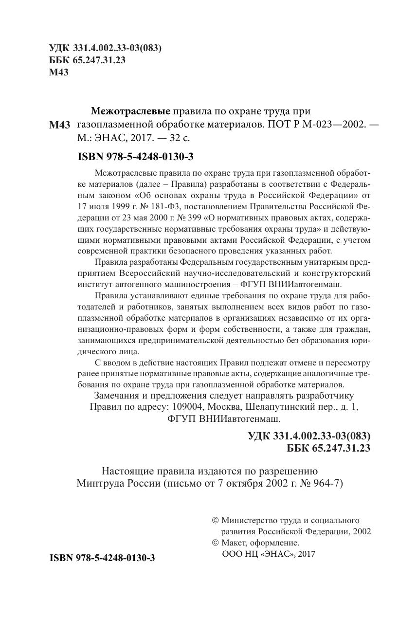 Межотраслевые правила по охране труда при газоплазменной обработке материалов. ПОТ Р М-023—2002
