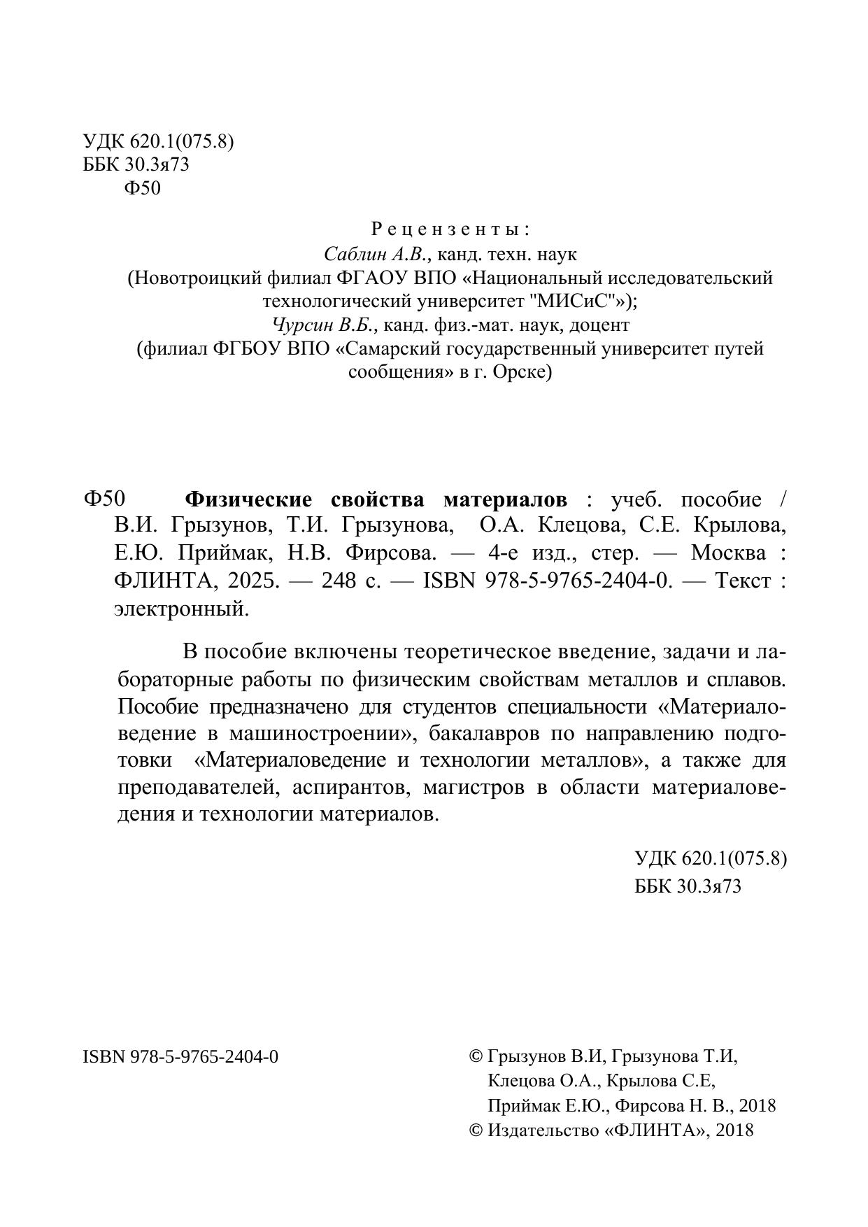 В пособие включены теоретическое введение, задачи и лабораторные работы по физическим свойствам металлов и сплавов. Пособие предназначено для студентов специальности «Материаловедение в машиностроении», бакалавров по направлению подготовки «Материаловедение и технологии металлов», а также для преподавателей, аспирантов, магистров в области материаловедения и технологии материалов.