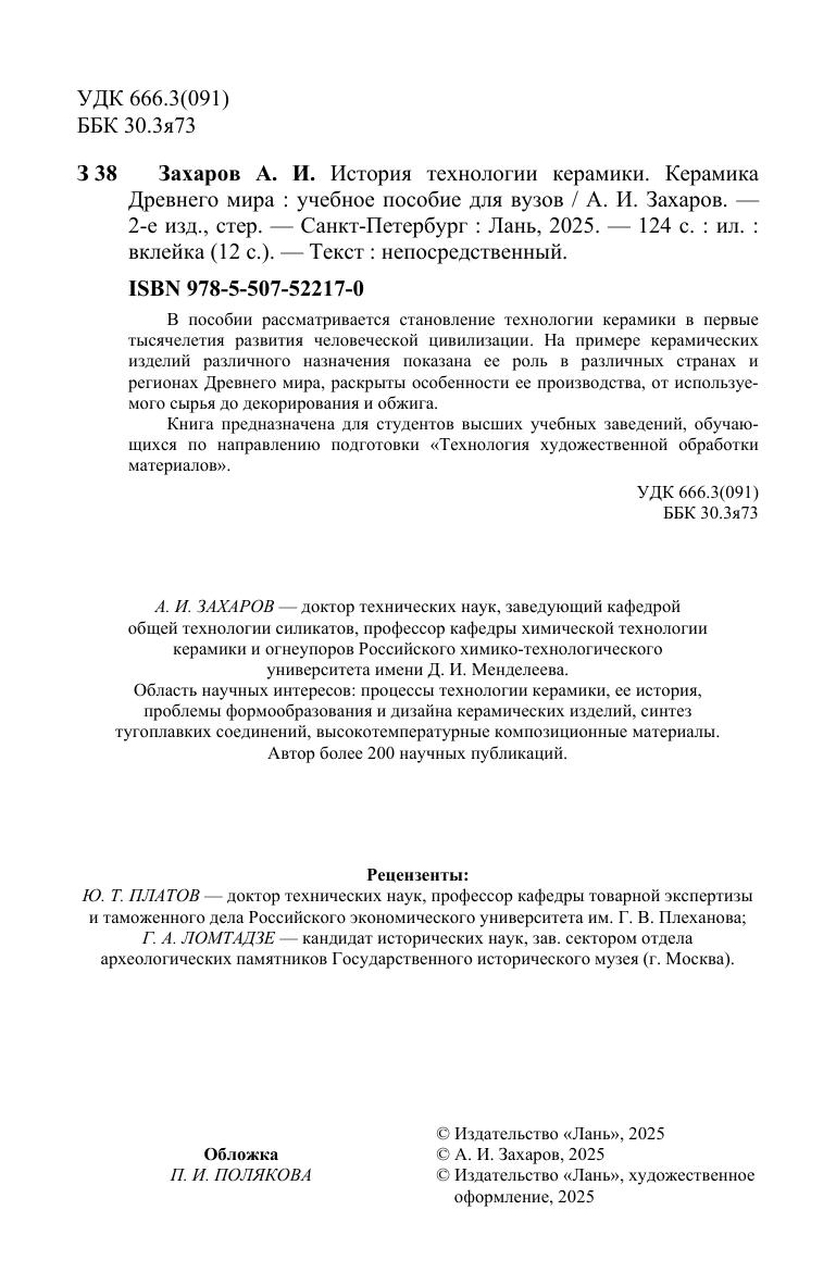 В пособии рассматривается становление технологии керамики в первые тысячелетия развития человеческой цивилизации. На примере керамических изделий различного назначения показана ее роль в различных странах и регионах Древнего мира, раскрыты особенности ее производства, от используемого сырья до декорирования и обжига. Книга предназначена для студентов высших учебных заведений, обучающихся по направлению подготовки «Технология художественной обработки материалов».
