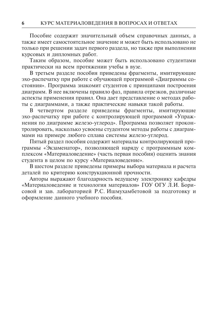 Пособие состоит из шести разделов. В каждом содержатся сведения из соответствующей области материаловедения. В первом приведены вопросы-тесты. Тесты содержат по четыре альтернативных ответа. В конце каждого раздела приведены ответы.