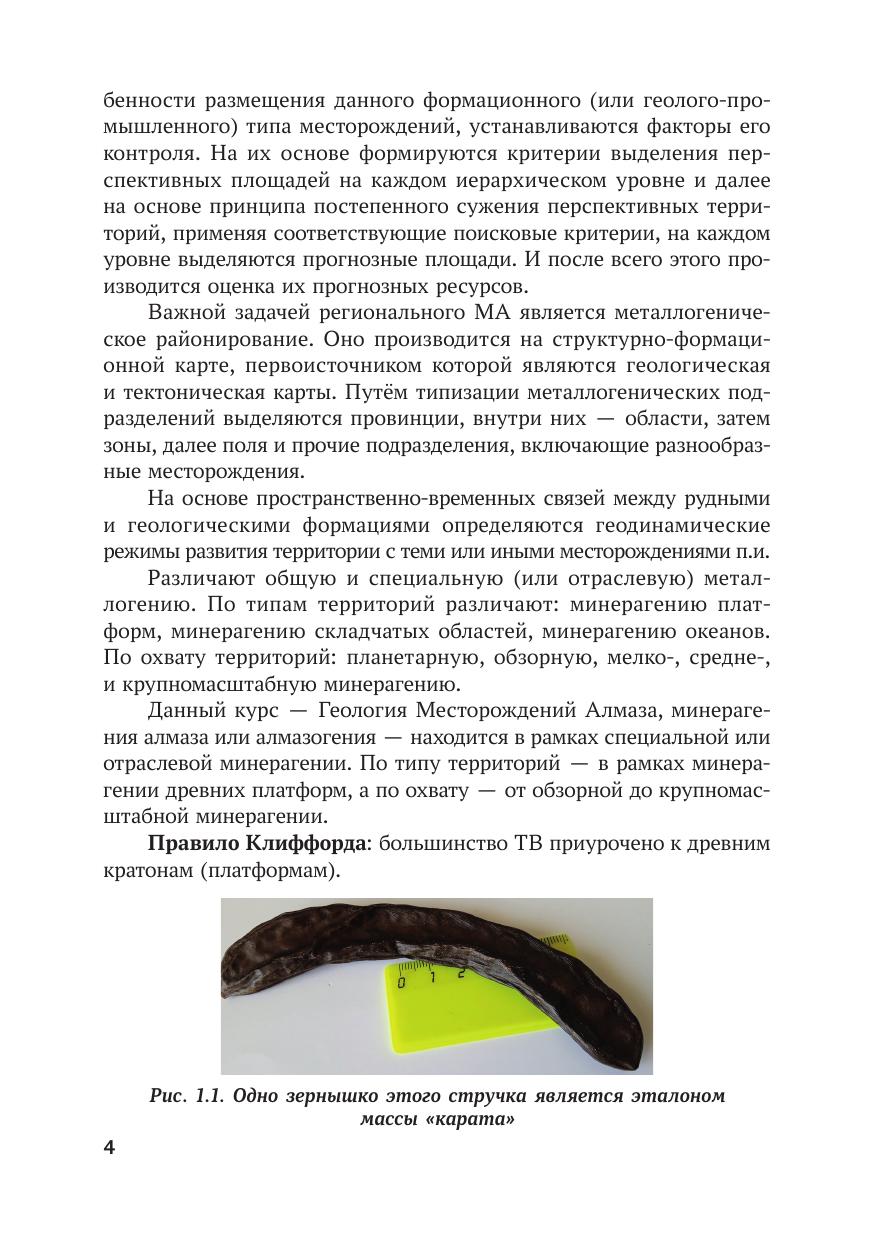 Учебное пособие по курсу «Промышленно-генетические типы месторождений алмаза, драгоценных и поделочных камней и металлов» содержит материалы по образованию и закономерностям размещения месторождений алмаза. В нём рассматриваются понятие «месторождение алмаза», качественные кондиции алмаза, алмазоносные породы, их минеральный и химический состав, условия образования, внешние особенности, алмазоносные структуры и их иерархия. Предназначено для студентов, обучающихся по направлению подготовки «Технология обработки материалов» и других специальностей.
