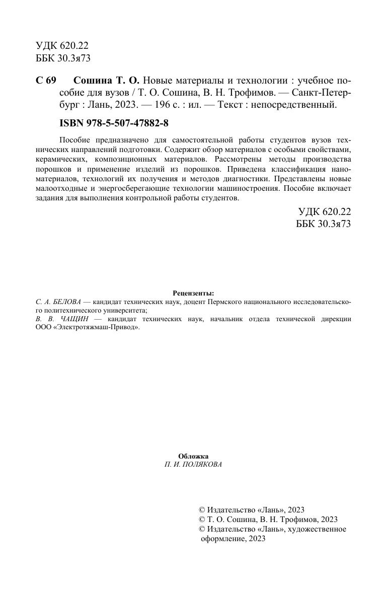 Пособие предназначено для самостоятельной работы студентов вузов технических направлений подготовки. Содержит обзор материалов с особыми свойствами, керамических, композиционных материалов. Рассмотрены методы производства порошков и применение изделий из порошков. Приведена классификация наноматериалов, технологий их получения и методов диагностики. Представлены новые малоотходные и энергосберегающие технологии машиностроения. Пособие включает задания для выполнения контрольной работы студентов.