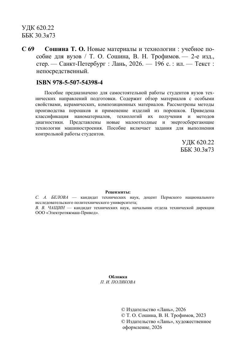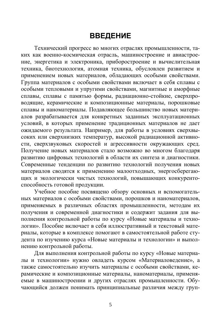 Пособие предназначено для самостоятельной работы студентов вузов технических направлений подготовки. Содержит обзор материалов с особыми свойствами, керамических, композиционных материалов. Рассмотрены методы производства порошков и применение изделий из порошков. Приведена классификация наноматериалов, технологий их получения и методов диагностики. Представлены новые малоотходные и энергосберегающие технологии машиностроения. Пособие включает задания для выполнения контрольной работы студентов.