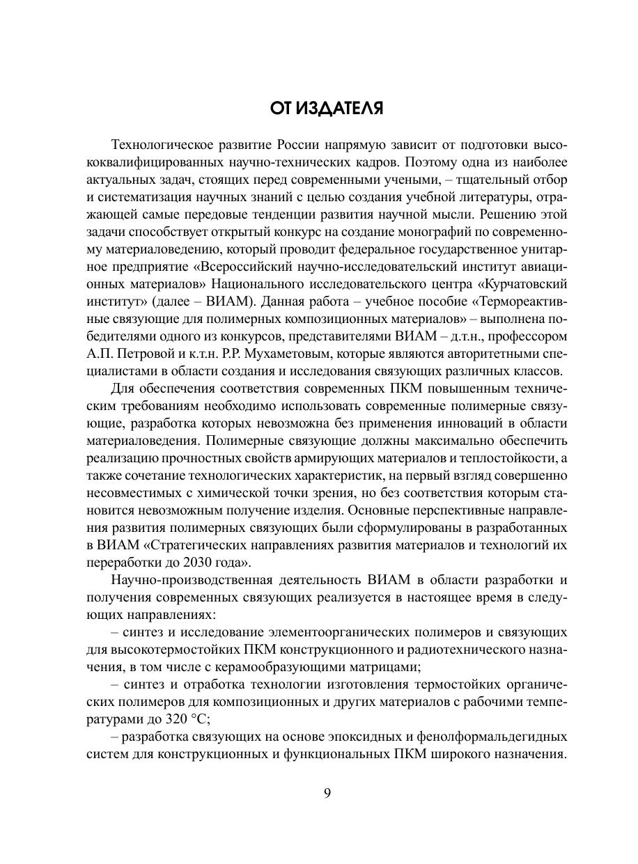 В учебном пособии рассмотрены основные типы современных связующих для полимерных композиционных материалов (ПКМ), их физико-механические, технологические и другие свойства, а также основные принципы направленного изменения свойств и подбора компонентов. Отдельные главы посвящены методам испытаний и исследований связующих, технологиям их переработки при получении ПКМ, анализу структуры отвержденного связующего в составе ПКМ различных типов (стекло-, угле- и органопластиков). Издание предназначено для студентов и аспирантов в качестве учебного пособия по специальности «Материаловедение и технологии материалов», а также может быть использовано специалистами, работающими в области создания и применения связующих и ПКМ на их основе в различных отраслях промышленности.