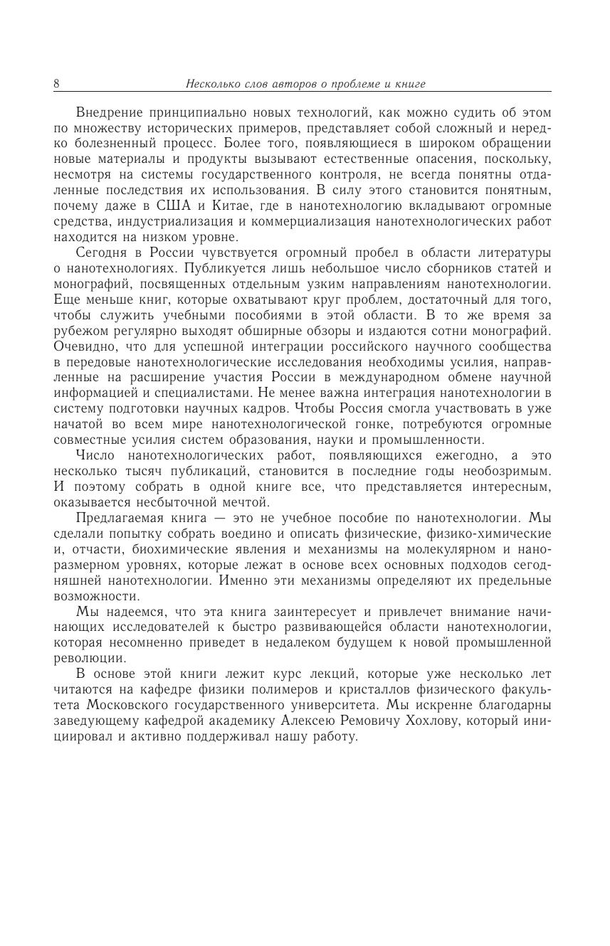 В доступной для широкого круга читателей форме рассматриваются история возникновения, основные направления и физико-химические принципы современных нанотехнологий, включая планарную технологию, супрамолекулярную химию, молекулярную электронику, получение наночастиц и наноструктурированных материалов. Подробно обсуждаются два основных пути создания наноматериалов: «снизу–вверх» и «сверху–вниз», а также методы изучения наноструктур и влияния размерных эффектов на их свойства. В основу книги положен курс лекций, которые в течение нескольких лет читаются одним из авторов на кафедре физики полимеров и кристаллов физического факультета Московского государственного университета.Книга адресована студентам, аспирантам и специалистам, интересующимся вопросами нанотехнологий.