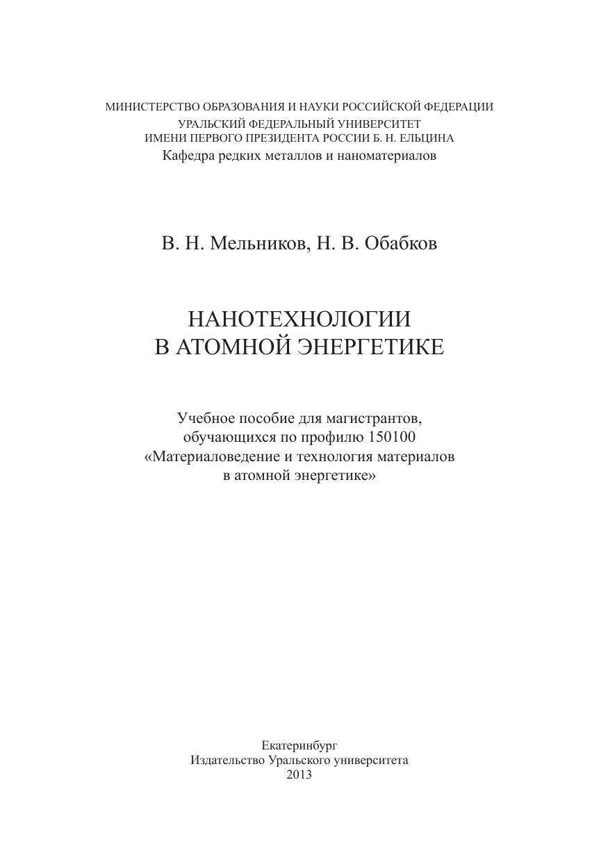 Нанотехнологии в атомной энергетике: учеб. пособие