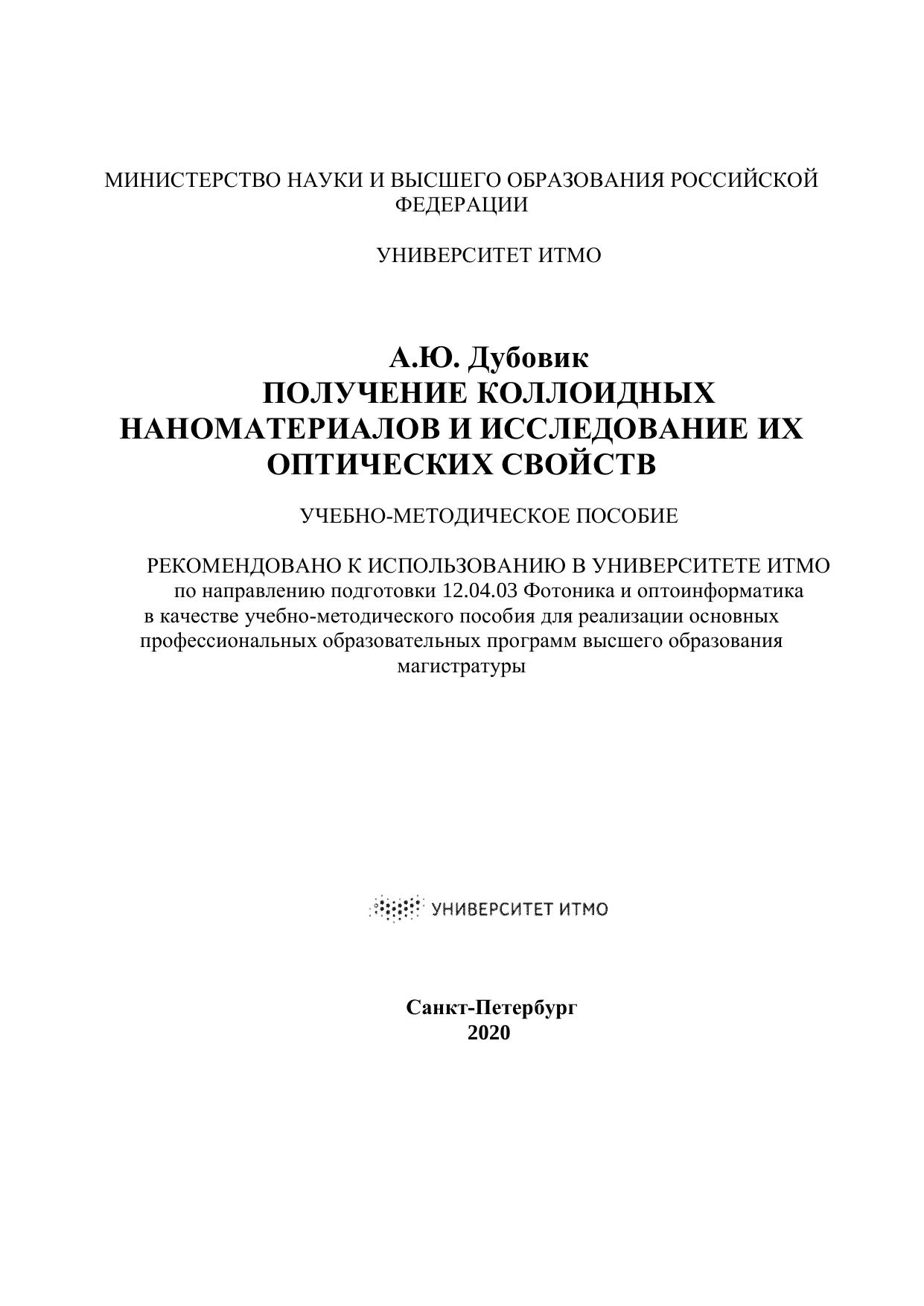 "Получение коллоидных наноматериалов и исследование их оптических свойств" относится к экспериментальному блоку в рамках курса "Химия наноструктур" и является разделом физической и коллоидной химии, позволяющим студентам освоить теоретические и практические подходы, применяемые в современных нанотехнологиях, базирующихся на свойствах дисперсных систем, получить общее представление о физических и физико-химических приборах и методах, применяемых в этой области. Дисциплина рассчитана на студентов магистратуры. Обеспечивает методическое сопровождение для выполнения экспериментального блока по дисциплине «Химия наноструктур» по 6 темам.