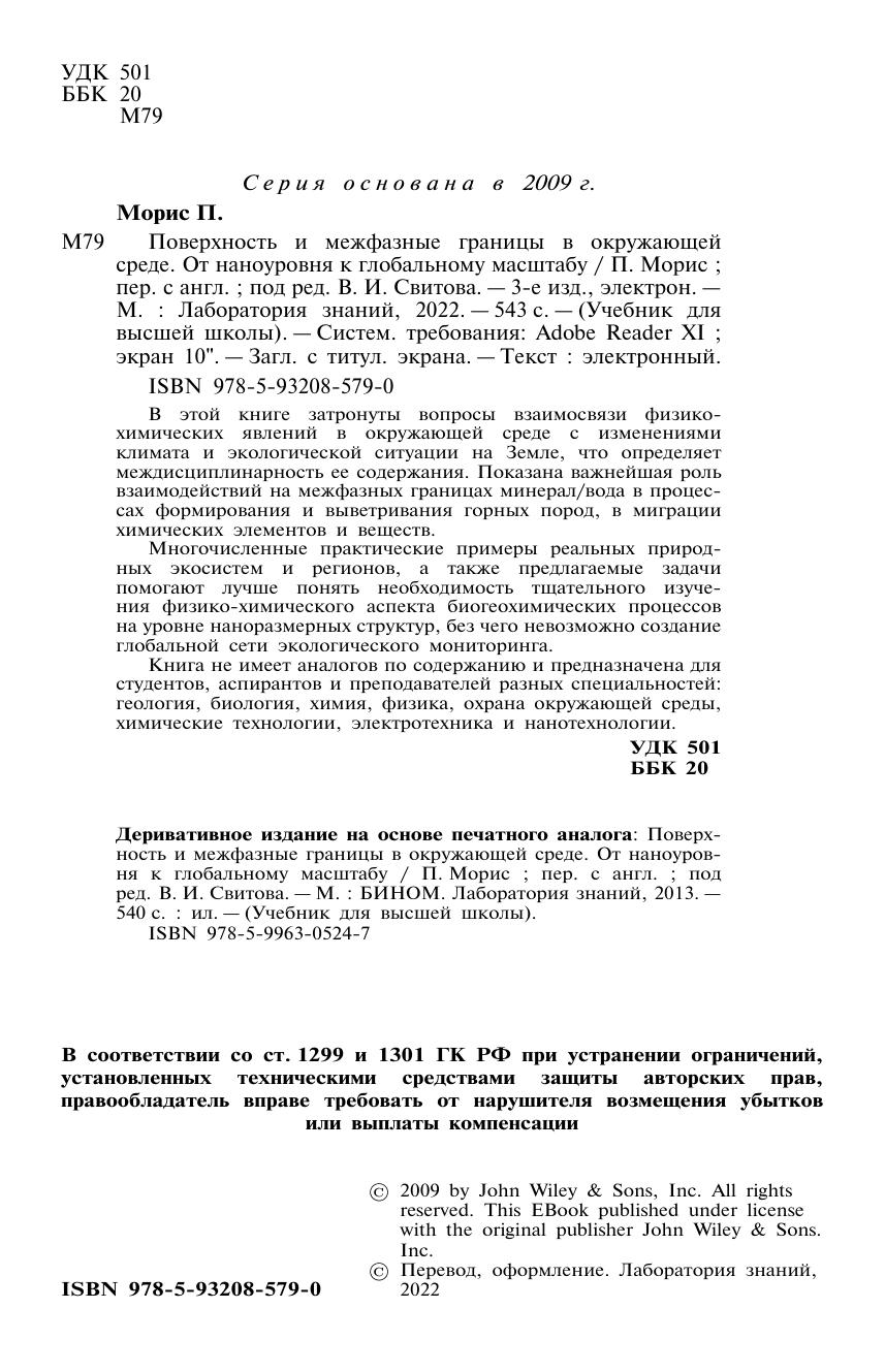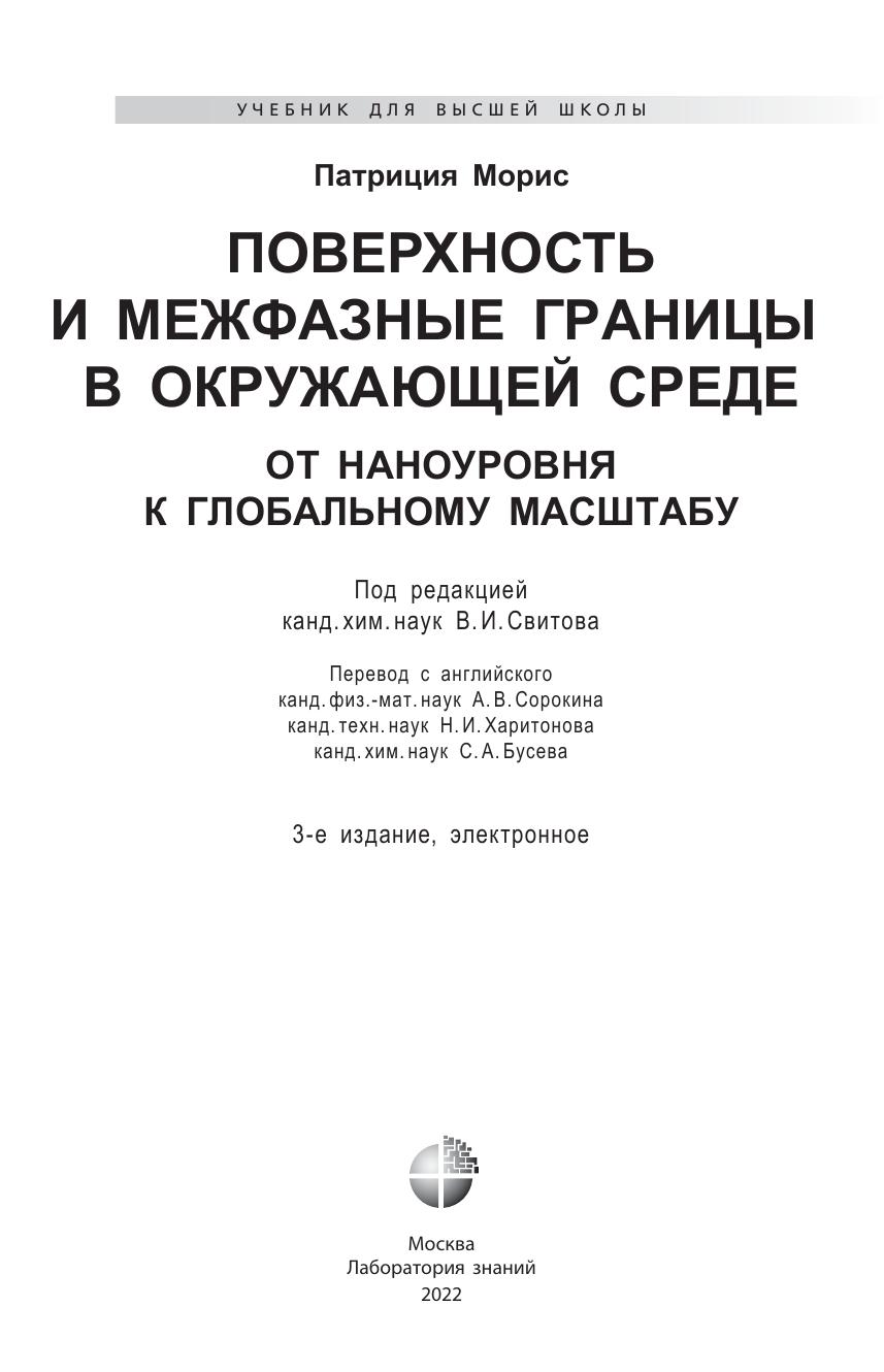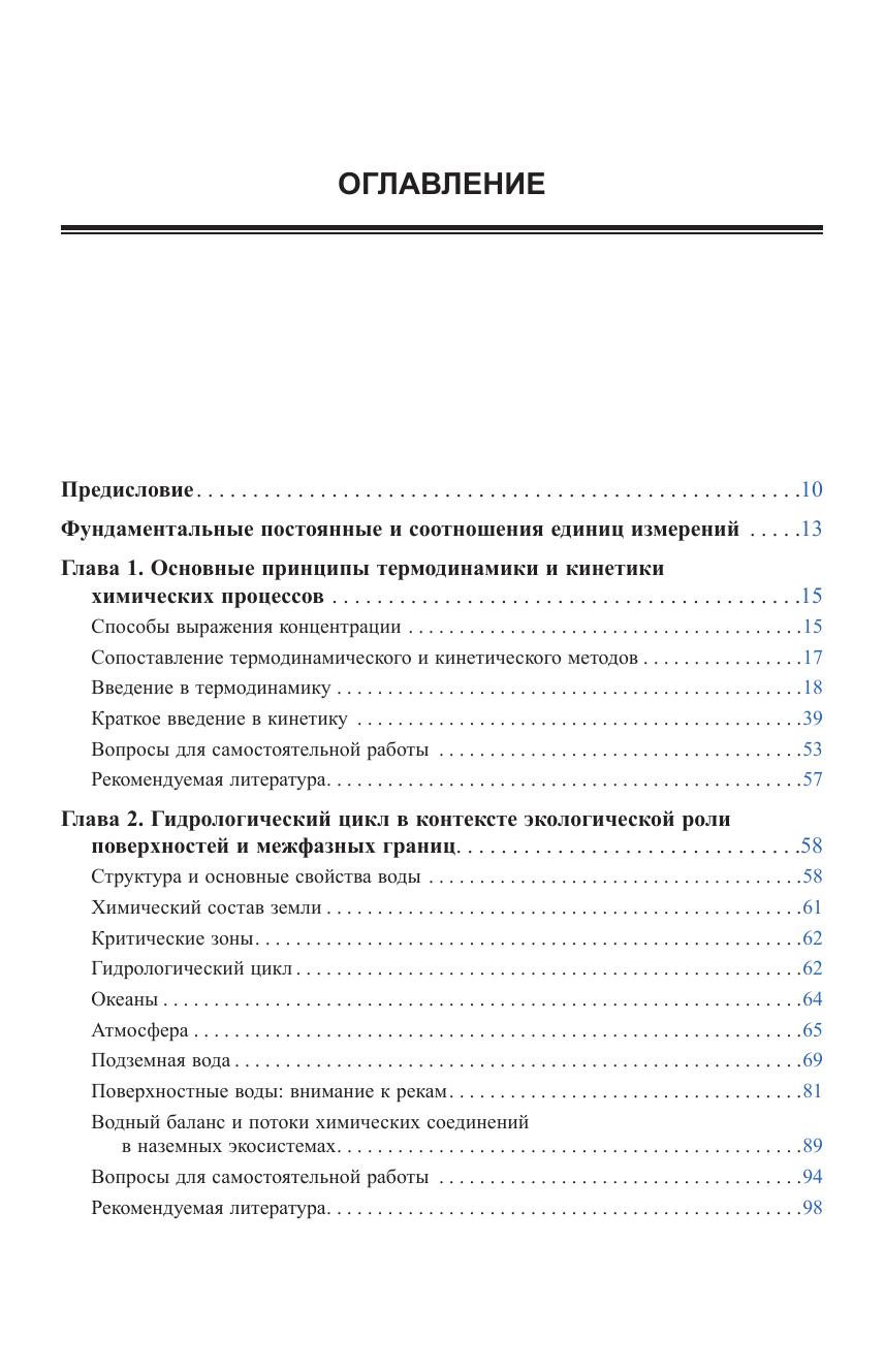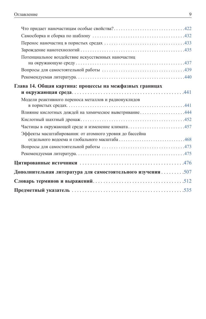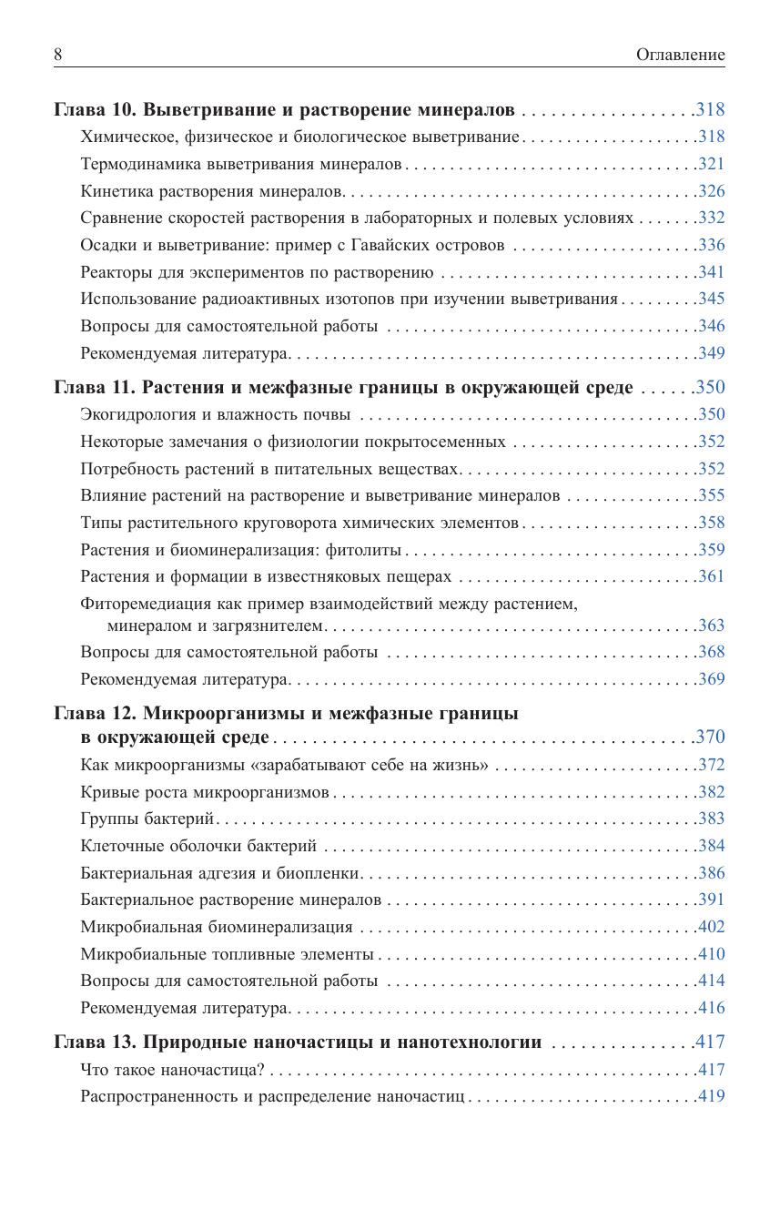 В этой книге затронуты вопросы взаимосвязи физико-химических явлений в окружающей среде с изменениями климата и экологической ситуации на Земле, что определяет междисциплинарность ее содержания. Показана важнейшая роль взаимодействий на межфазных границах минерал/вода в процессах формирования и выветривания горных пород, в миграции химических элементов и веществ. Многочисленные практические примеры реальных природных экосистем и регионов, а также предлагаемые задачи помогают лучше понять необходимость тщательного изучения физико-химического аспекта биогеохимических процессовна уровне наноразмерных структур, без чего невозможно создание глобальной сети экологического мониторинга. Книга не имеет аналогов по содержанию и предназначена для студентов, аспирантов и преподавателей разных специальностей: геология, биология, химия, физика, охрана окружающей среды, химические технологии, электротехника и нанотехнологии.