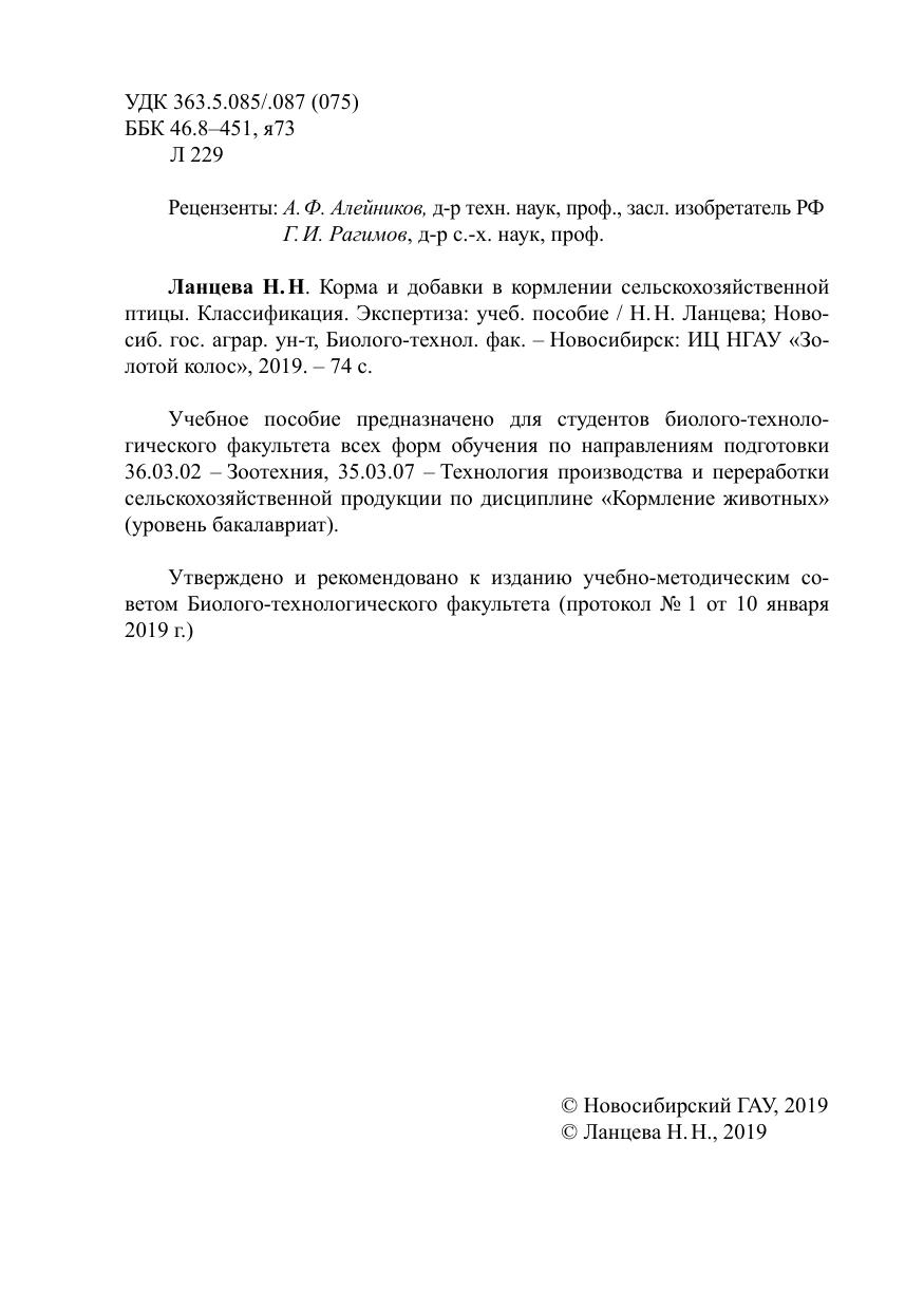 Учебное пособие предназначено для студентов биолого-технологического факультета всех форм обучения по направлениям подготовки 36.03.02 – Зоотехния, 35.03.07 – Технология производства и переработки сельскохозяйственной продукции по дисциплине «Кормление животных» (уровень бакалавриат). Утверждено и рекомендовано к изданию учебно-методическим советом Биолого-технологического факультета (протокол № 1 от 10 января 2019 г.)