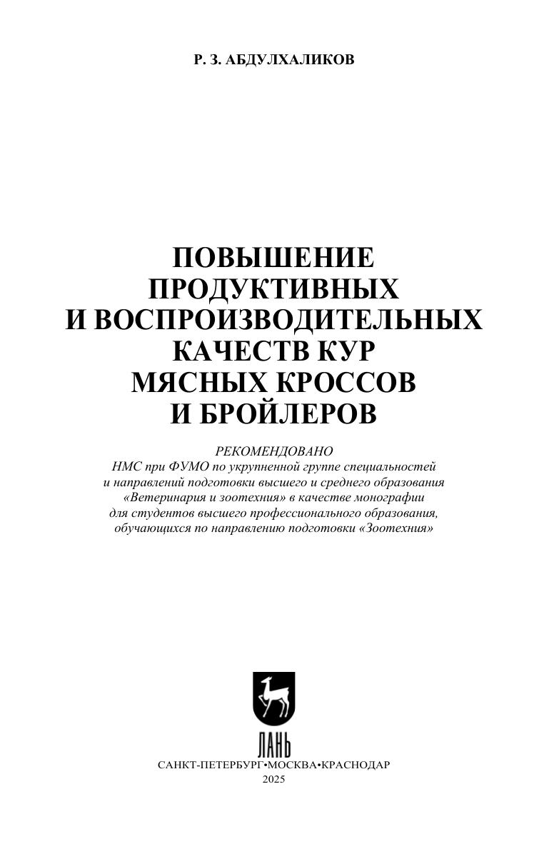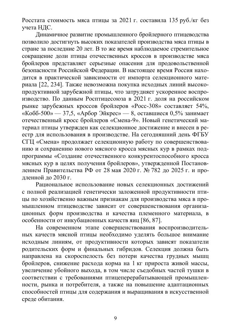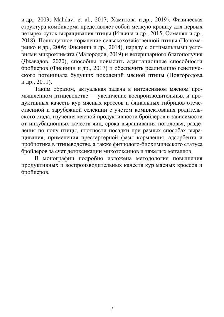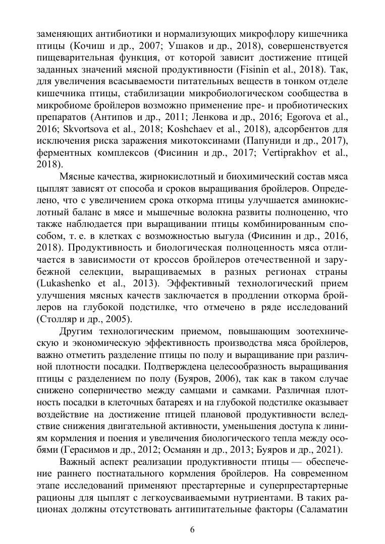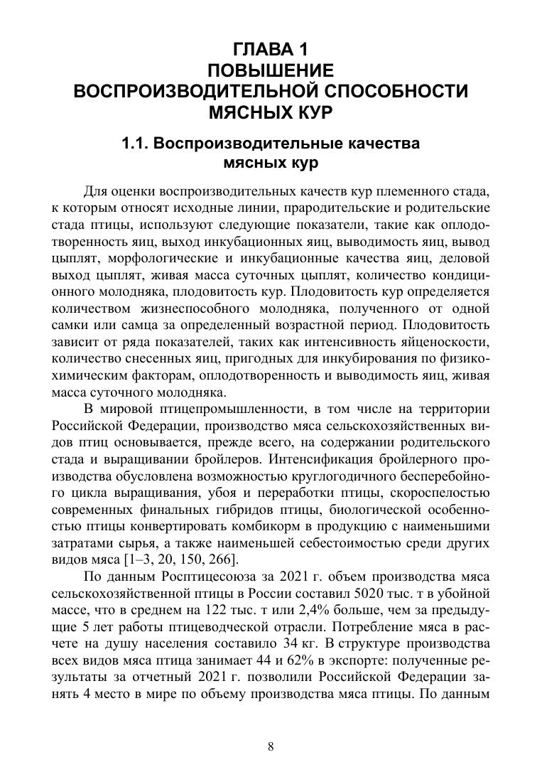 В настоящей монографии представлен опыт многолетних исследований, данные которых позволили расширить научную информацию о влиянии различных способов комплектования родительского стада кур мясных кроссов на репродуктивную функцию, о продуктивности бройлеров в зависимости от инкубационных качеств яиц кур родительского стада, о биологической ценности мяса бройлеров отечественной и зарубежной селекции, о возможности выращивания бройлеров по технологии с продлённым откормом, разделением по полу и различной плотностью посадки в зависимости от способа выращивания, о применении престартерной фазы кормления бройлеров и использовании ферментно-пробиотических комплексов, о приёмах улучшения физиолого-биохимического статуса птицы. Автор приводит в работе научно обоснованные рекомендации по совершенствованию продуктивных и воспроизводительных качеств кур мясных кроссов и бройлеров, исходя из комплекса технологических мероприятий. Монография представляет интерес как для ученых-исследователей и обучающихся по профильным специальностям, так и для специалистов-практиков.