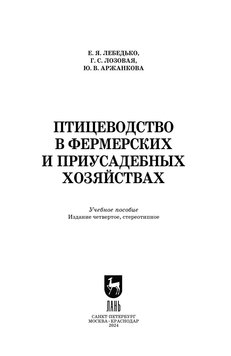 Птицеводство в фермерских и приусадебных хозяйствах Лебедько Е. Я., Лозовая Г. С., Аржанкова Ю. В.