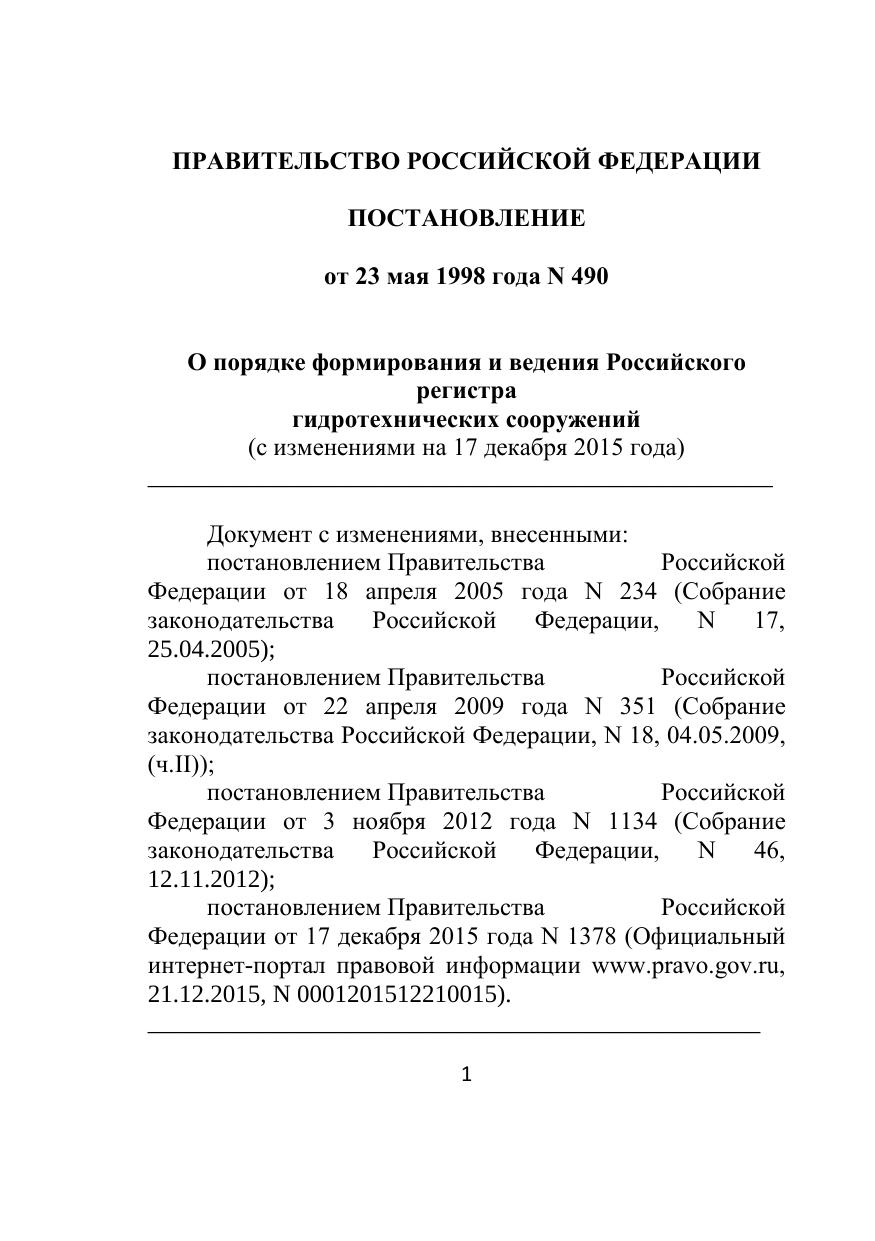 О порядке формирования и ведения Российского регистра гидротехнических сооружений (с изменениями на 17 декабря 2015 года)