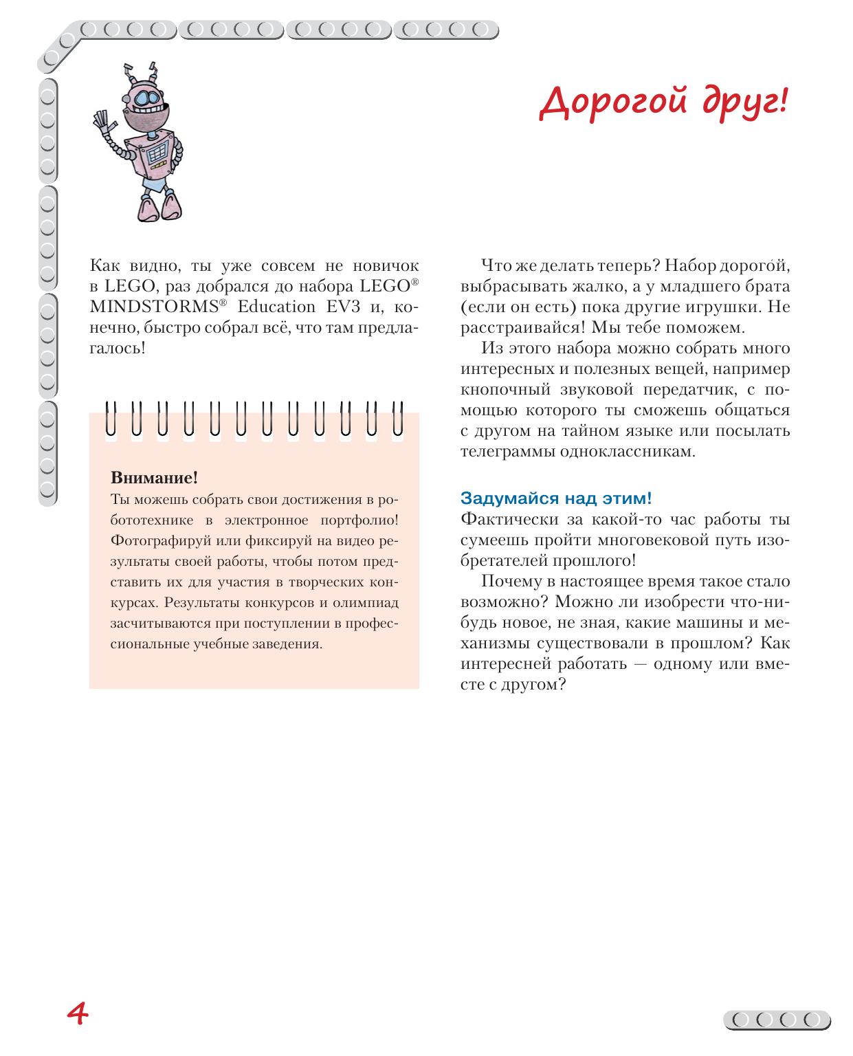 Стать гениальным изобретателем легко! Серия книг «РОБОФИШКИ» поможет вам создавать роботов, учиться и играть вместе с ними. Вы познакомитесь с историей величайшего изобретения человечества — телеграфом, узнаете о знаменитом способе кодирования информации и сами освоите его. Всего за несколько часов вы соберёте из деталей конструктора LEGO® MINDSTORMS® Education EV3 самый настоящий передатчик, с помощью которого можно общаться с друзьями на тайном языке или посылать телеграммы. Для технического творчества в школе и дома, а также на занятиях в робототехнических кружках.
