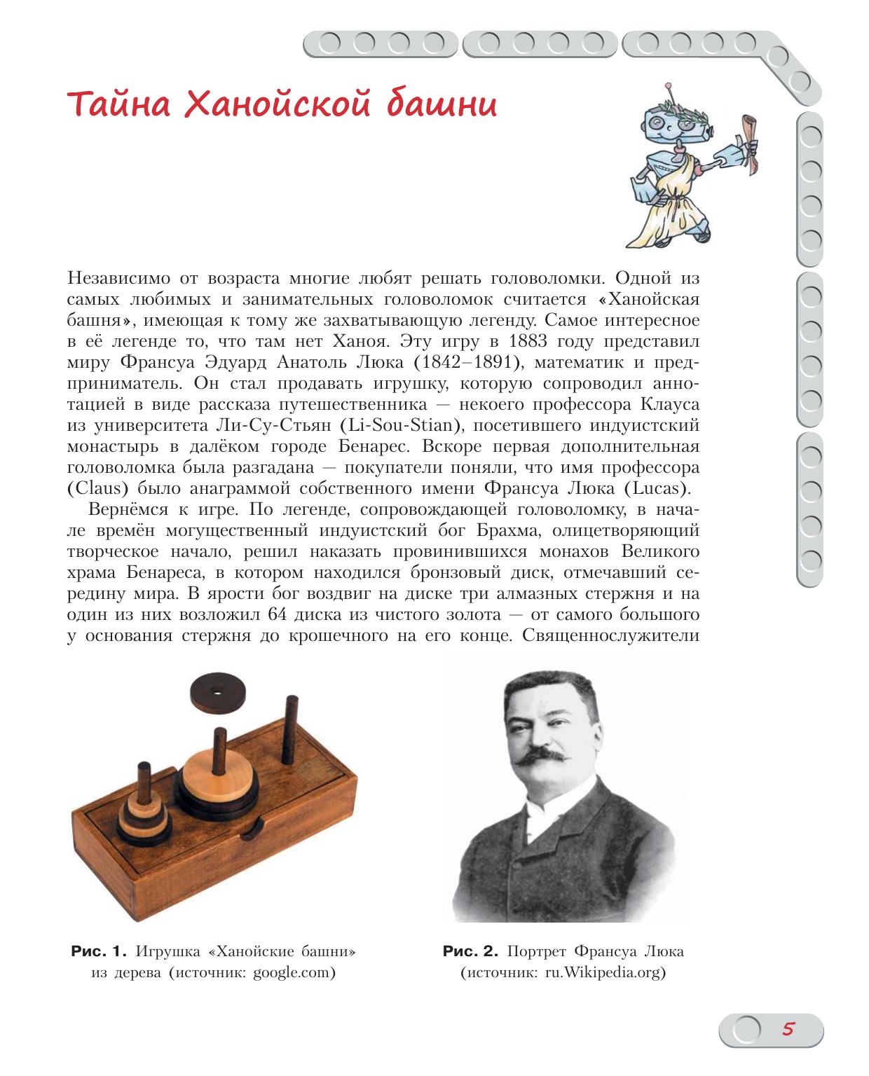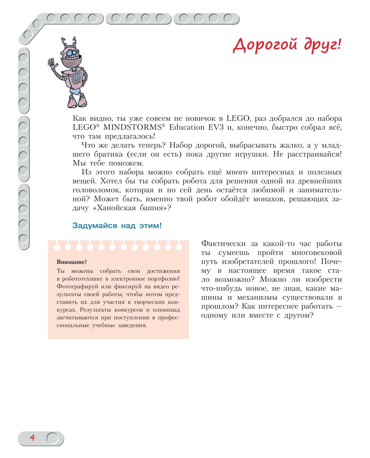 Стать гениальным изобретателем легко! Серия книг «РОБОФИШКИ» поможет вам создавать роботов, учиться и играть вместе с ними. С помощью деталей конструктора LEGO R MINDSTORMS R Education EV3 вы сможете собрать робот-манипулятор, решающий головоломку «Ханойская башня» с тремя дисками. Для технического творчества в школе и дома, а также на занятиях в робототехнических кружках.
