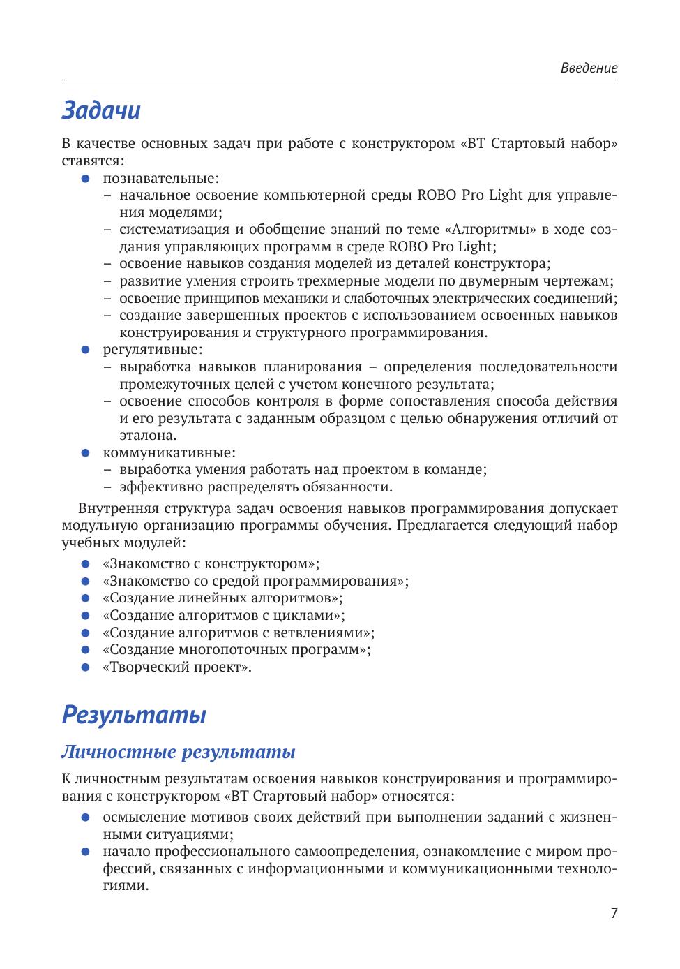 В этом методическом пособии подробно описываются подготовка и ход занятий по робототехнике в начальной школе. Ученики начальных классов на уроках технологии и робототехники или в рамках внеурочной деятельности под руководством педагога собирают множество моделей и программируют их на выполнение простых действий. По мере повышения сложности задач учащиеся совершенствуют навыки механической сборки, сборки электрических схем и изучают программирование с помощью стандартных блок-схем.