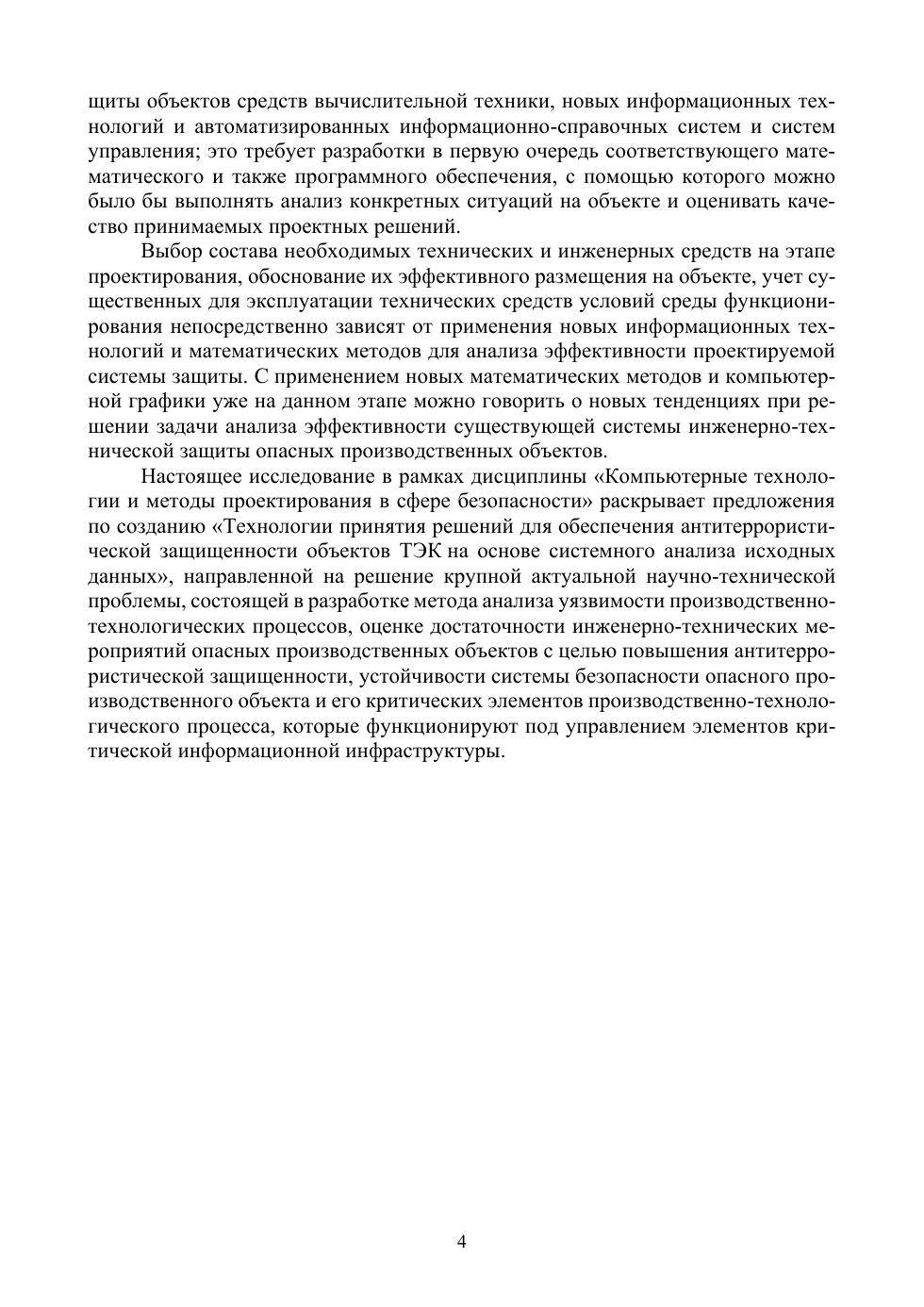 В учебнике изложены ключевые направления техносферной безопасности в рамках учебной программы дисциплины «Компьютерные технологии и методы проектирования в сфере безопасности», представлены методы проектирования систем инженерно-технической защиты опасных производственных объектов, рассмотрены вопросы анализа уязвимости производственно-технологических процессов, оценки эффективности систем безопасности, приведены примеры расчетов возможного размера ущерба при оценке риска аварий на опасных производственных объектах с помощью программного комплекса «TOXI+Risk» и формирования компенсационных мероприятий системы физической защиты.
