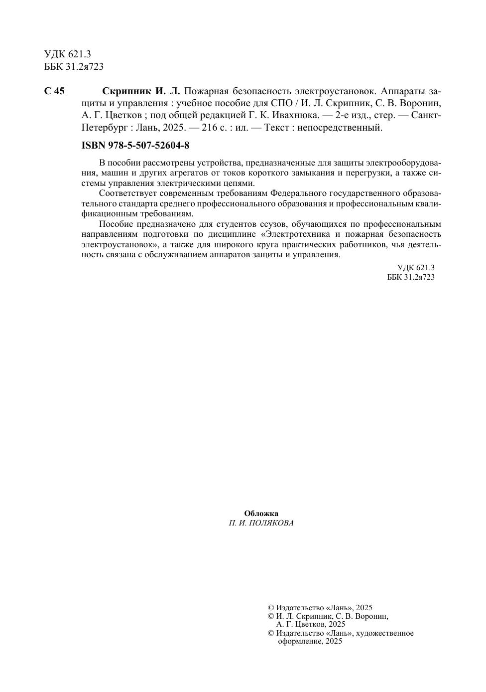 В пособии рассмотрены устройства, предназначенные для защиты электрооборудования, машин и других агрегатов от токов короткого замыкания и перегрузки, а также системы управления электрическими цепями. Соответствует современным требованиям Федерального государственного образовательного стандарта среднего профессионального образования и профессиональным квалификационным требованиям. Пособие предназначено для студентов ссузов, обучающихся по профессиональным направлениям подготовки по дисциплине «Электротехника и пожарная безопасность электроустановок», а также для широкого круга практических работников, чья деятельность связана с обслуживанием аппаратов защиты и управления.