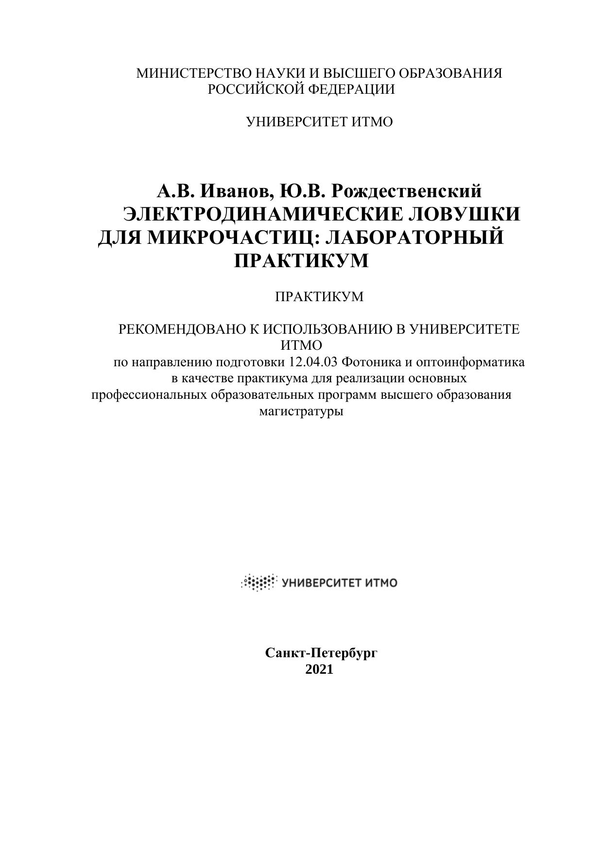 Учебное пособие "Электродинамические ловушки для микрочастиц: лабораторный практикум" – вторая часть учебного комплекса «Электродинамические ловушки для микрочастиц». Практикум содержит подробное описание и руководство по выполнению лабораторных работ по локализации, селекции и управлению заряженными микрочастицами в линейных и трёхмерных электродинамических ловушках.
