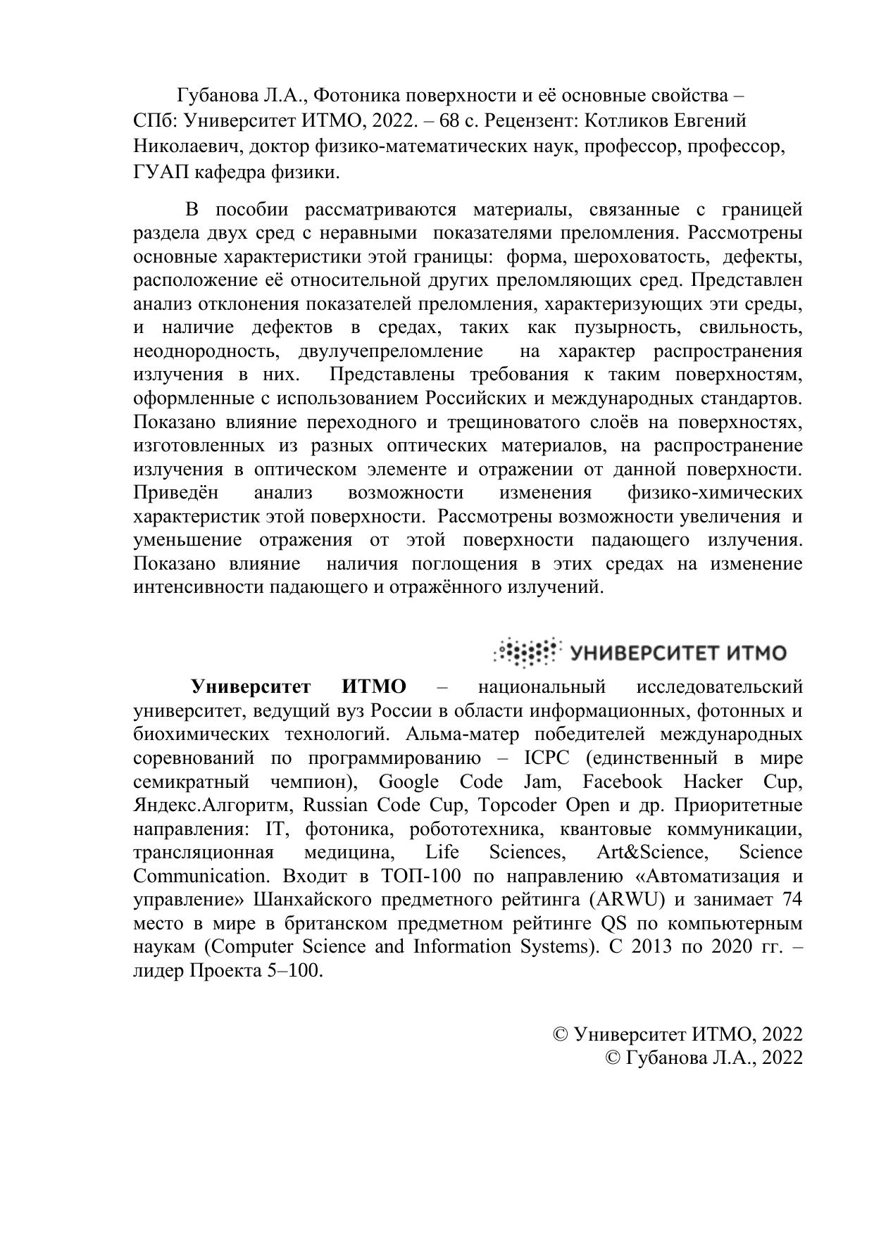 Издательство: НИУ ИТМО (Санкт-Петербургский национальный исследовательский университет информационных технологий, механики и оптики)