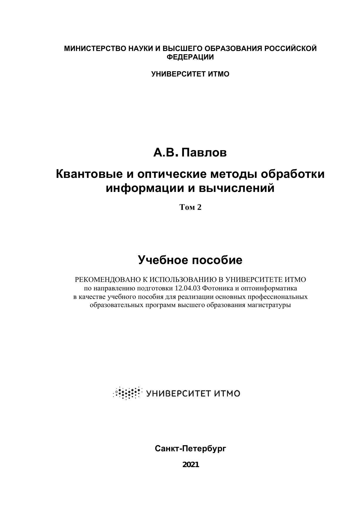 Квантовые и оптические мтоды обработки информации и вычислений. Том 2