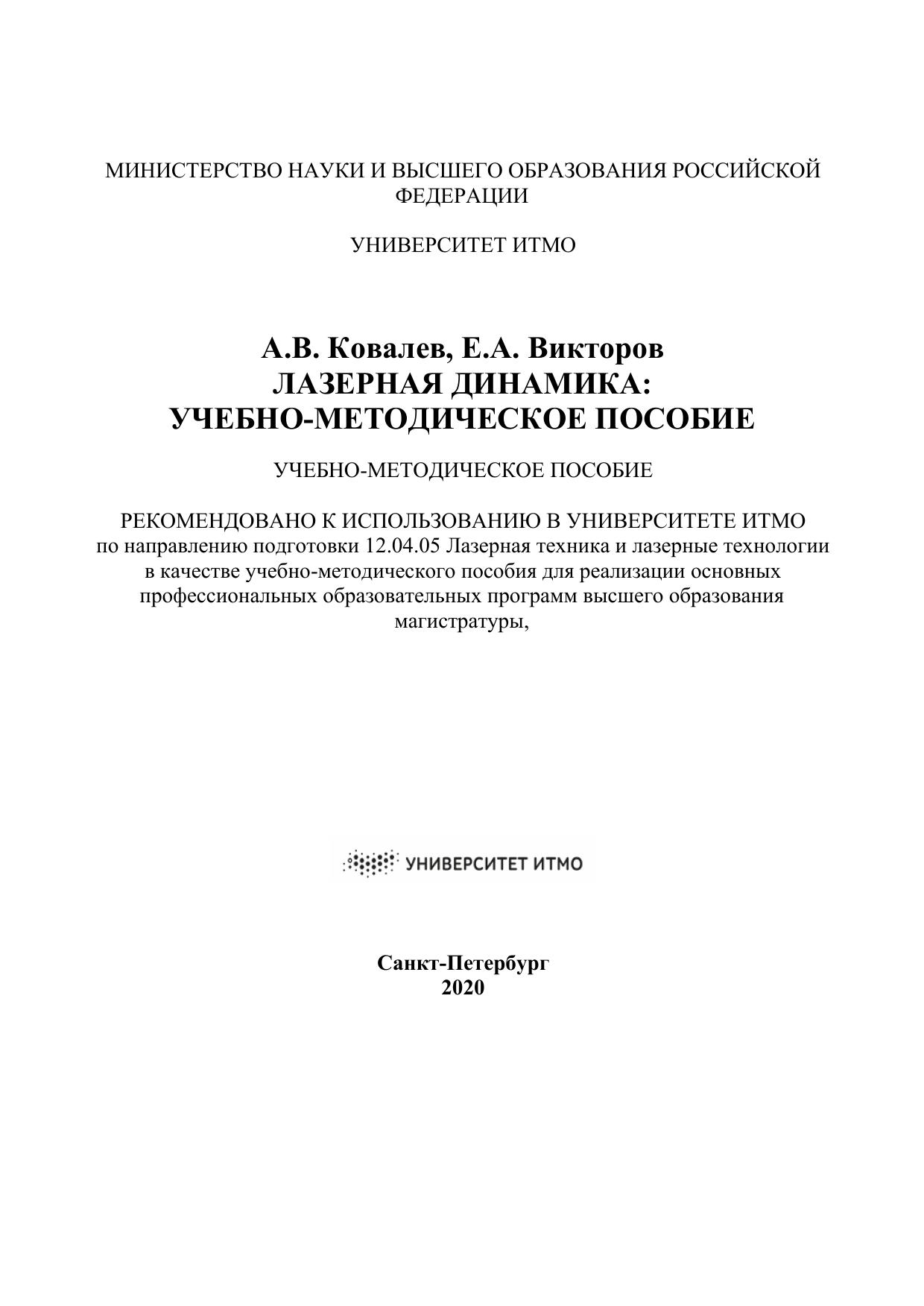 Учебно-методическое пособие знакомит учащихся с предметом изучения дисциплины «Лазерная динамика», основными понятиями, методами и подходами, применяемыми при исследовании динамики лазерных систем. Пособие предназначено для студентов, проходящих курс «Лазерная динамика» и обучающихся по направлению «Лазерная техника и лазерные технологии» (образовательная программа «Лазерные технологии»), а также студентов, аспирантов и исследователей, область научных интересов которых связана с анализом и управлением динамическими процессами в лазерных системах.