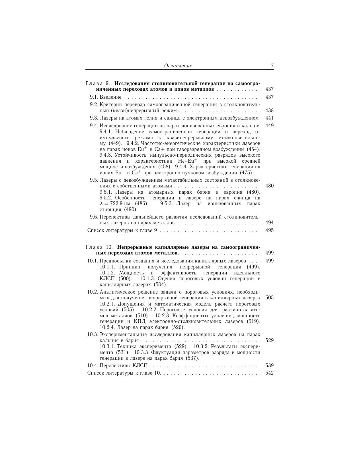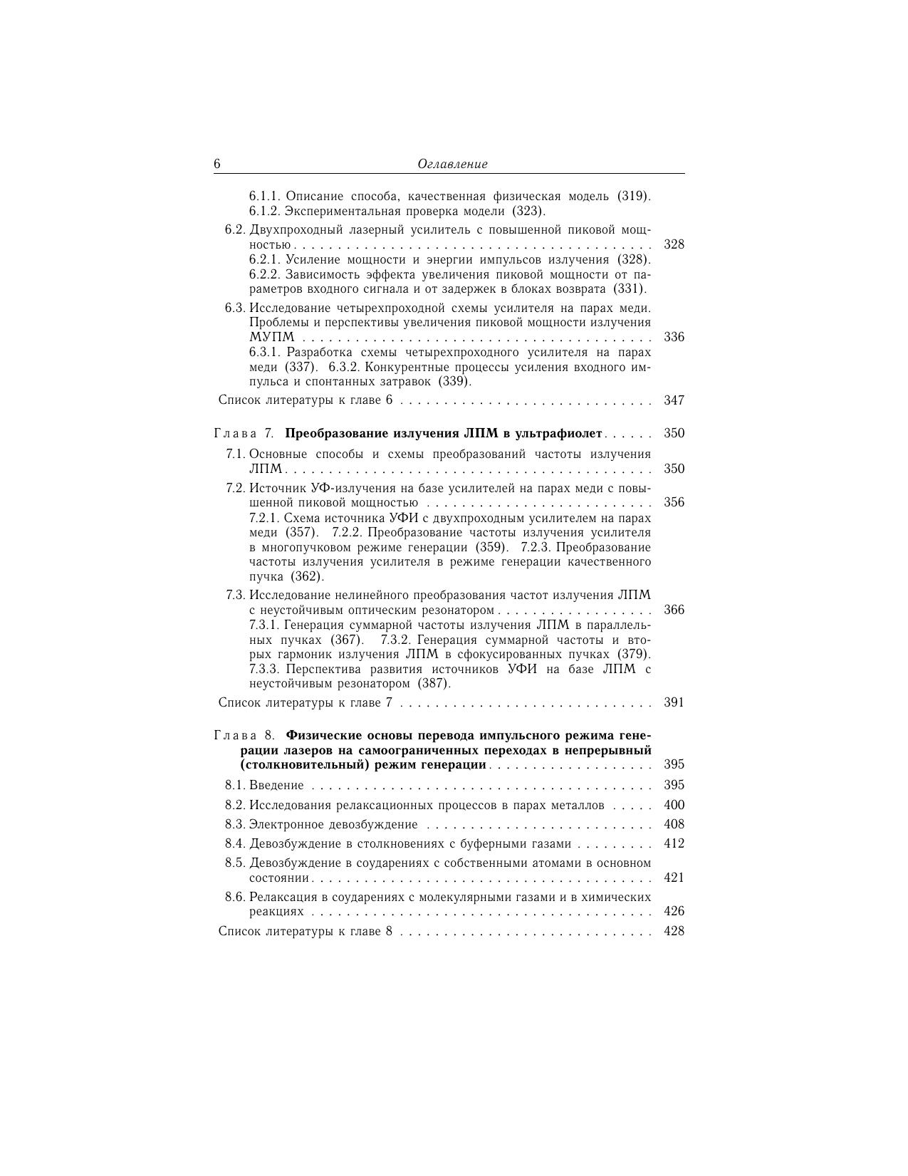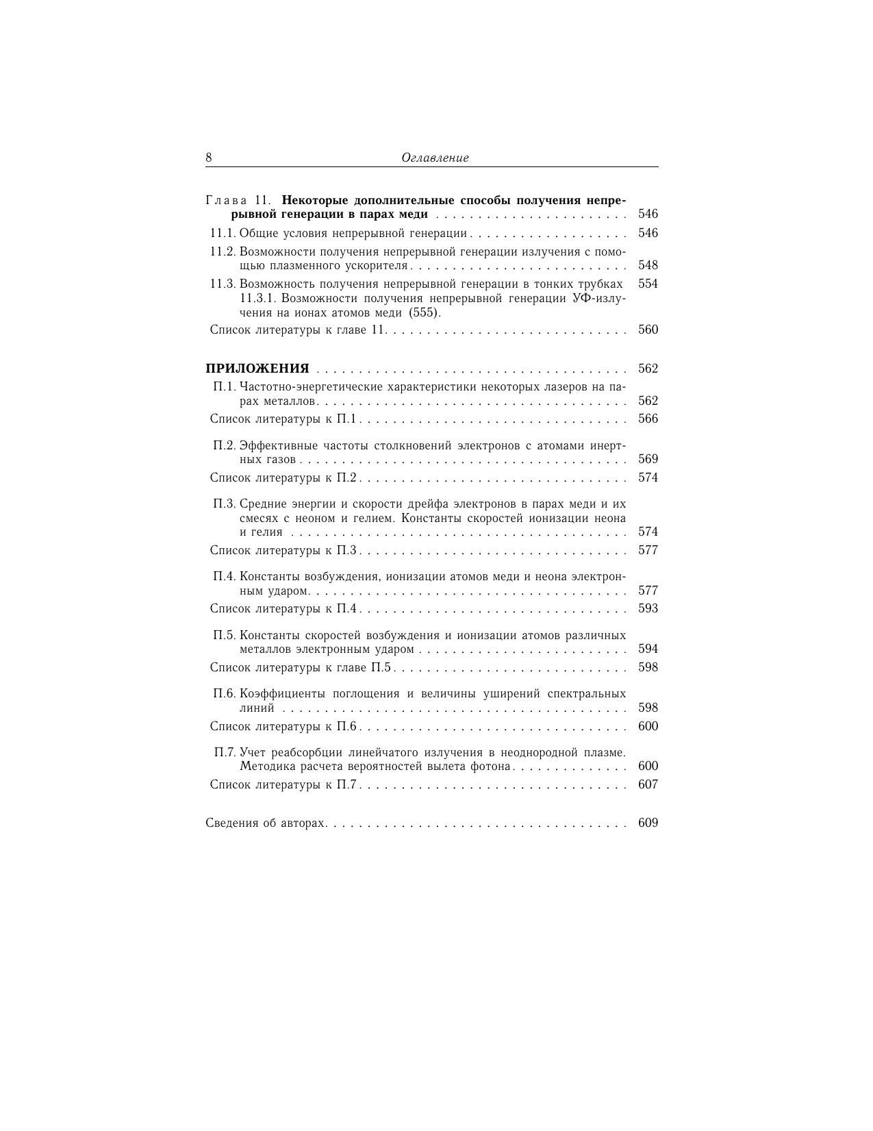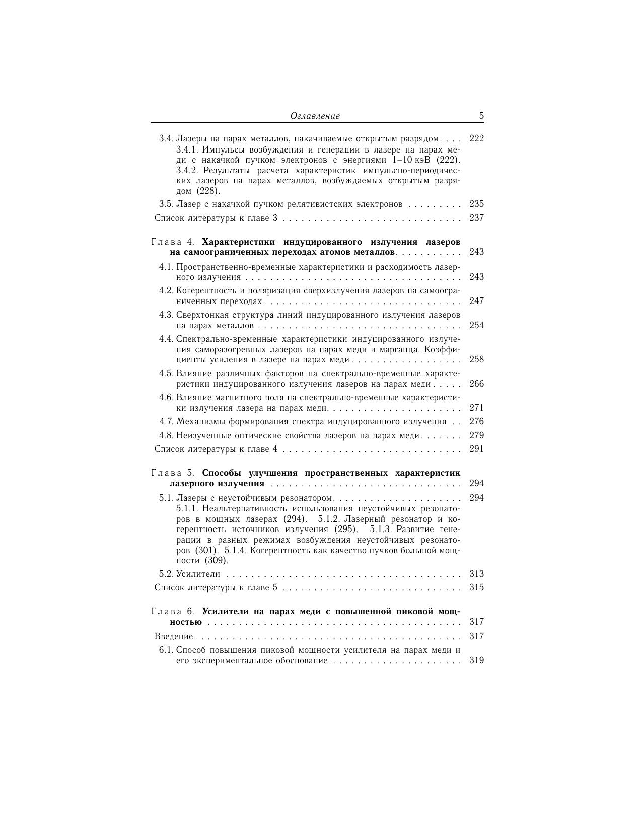 Во втором томе книги рассмотрены лазеры на парах металлов и их химических соединений (галогенидов). Приводятся результаты исследований по генерации импульсов излучения с высокими частотами следования. Обсуждается физика лазеров, возбуждаемых пучками электронов, генерируемых открытым разрядом. Уделено внимание описанию и улучшению физических характеристик индуцированного излучения. Излагается способ повышения пиковой мощности импульсов излучения с использованием многопроходных усилителей. Представлены результаты работ по преобразованию излучения усилителей и лазеров на парах меди в ультрафиолетовое излучение. Особое место в книге занимает рассмотрение физических основ для перевода импульсного режима генерации лазеров на самоограниченных переходах в непрерывный и квазинепрерывный режимы различными способами. В приложении даны сведения о лазерах, собран материал, необходимый для расчета констант элементарных процессов и оценки реабсорбции спонтанного излучения в плазме. Книга адресована научным сотрудникам, инженерам, аспирантам и студентам высших учебных заведений.