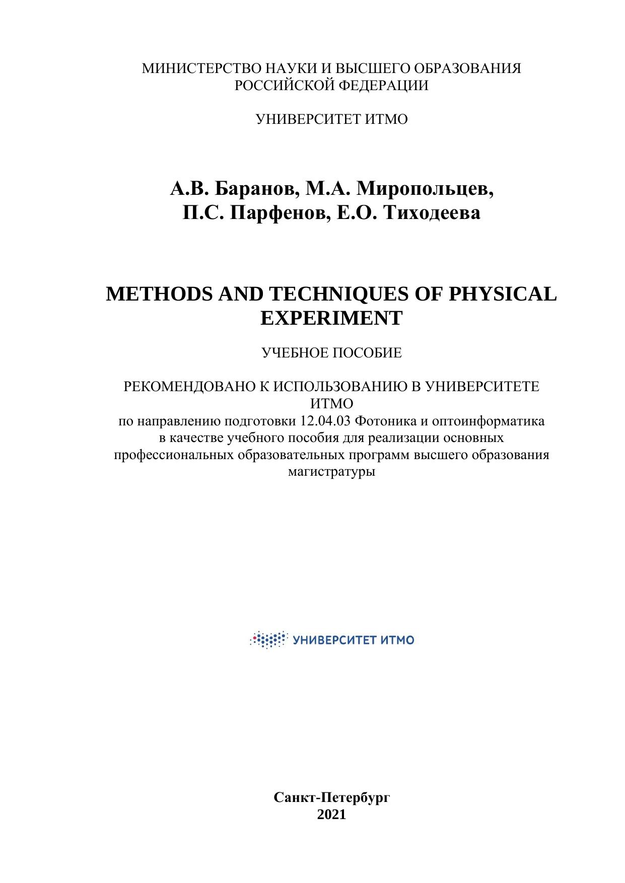 Авторы: Баранов А. В., Миропольцев М. А., Парфенов П. С., Тиходеева Е. О.