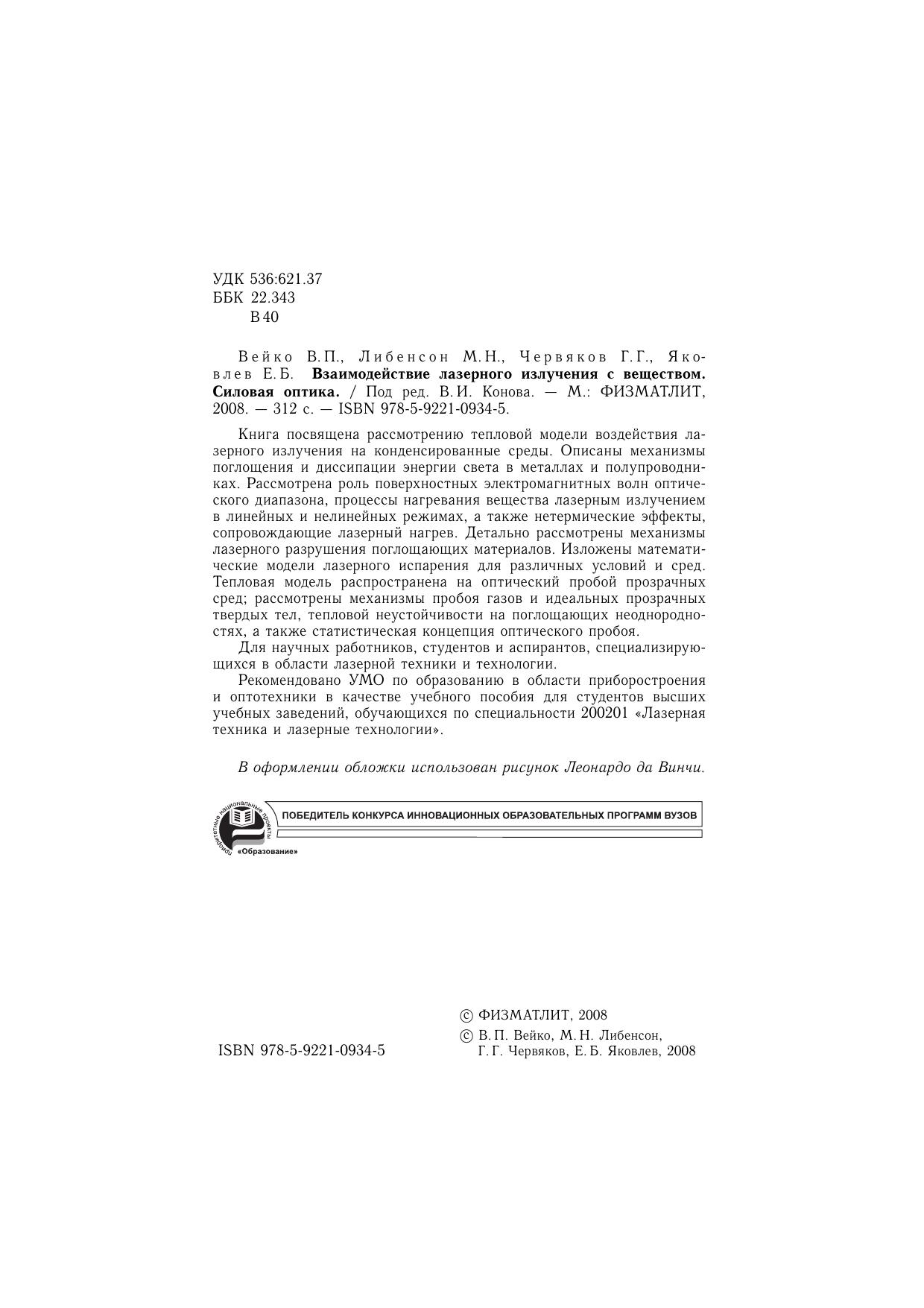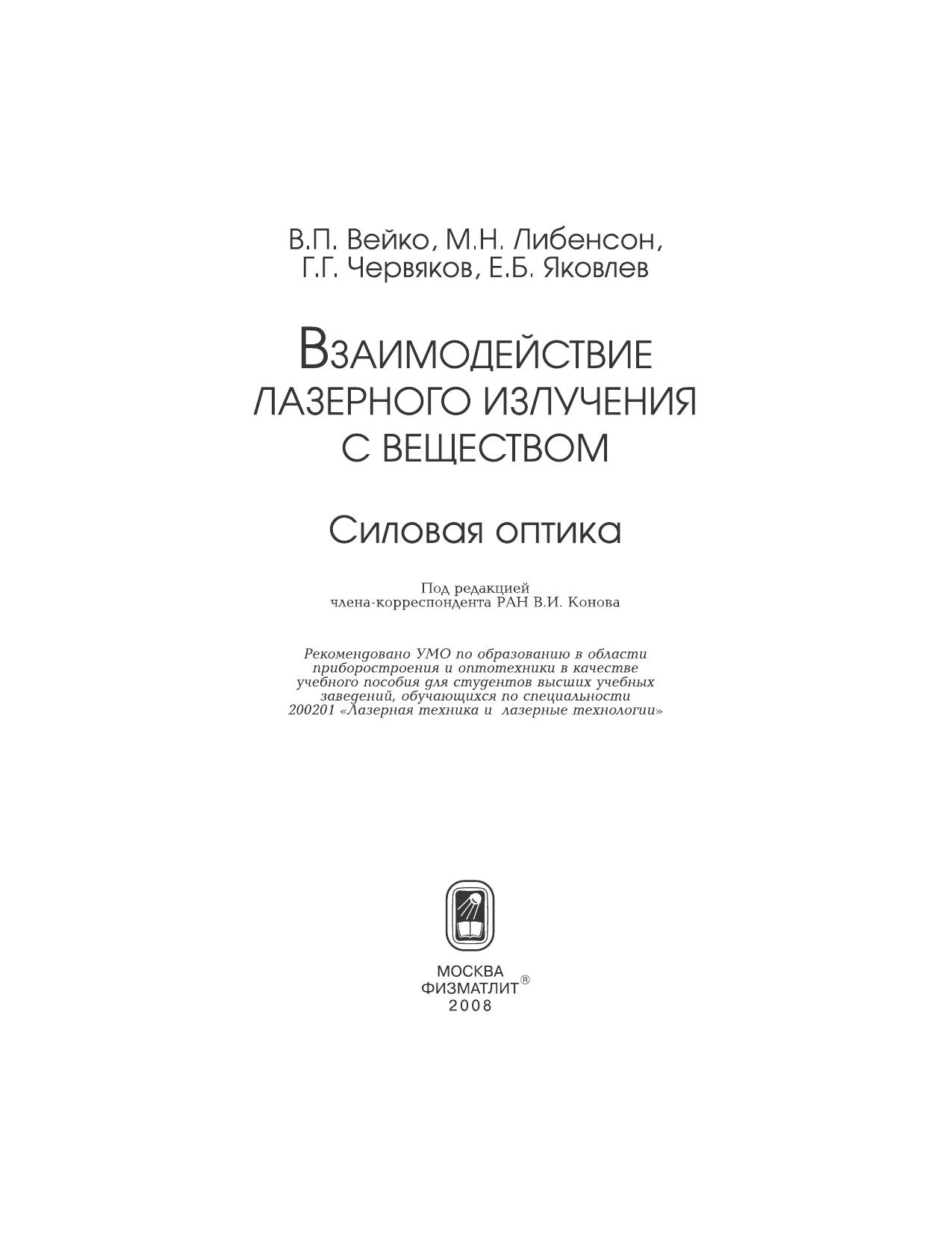 Авторы: Вейко В.П., Либенсон М.Н., Червяков Г.Г., Яковлев Е.Б.