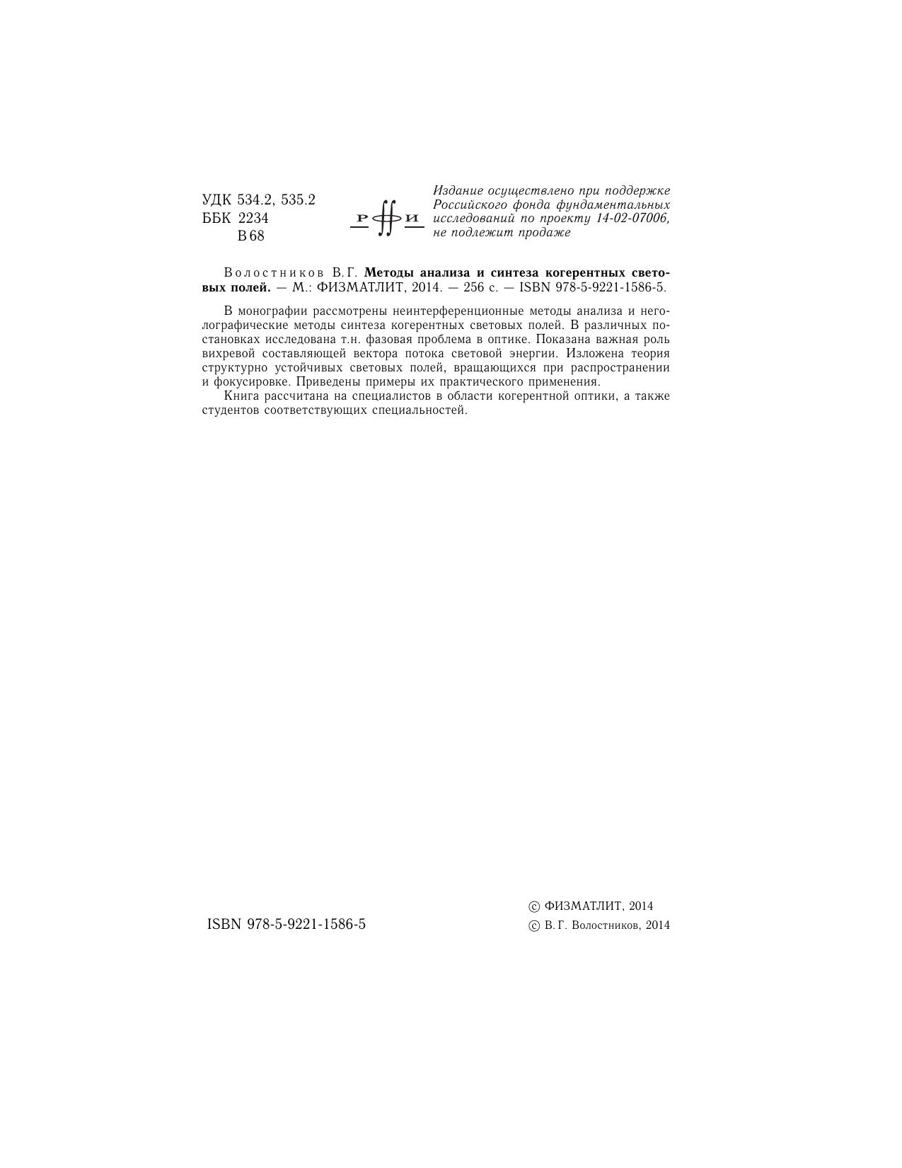 В монографии рассмотрены неинтерференционные методы анализа и неголографические методы синтеза когерентных световых полей. В различных постановках исследована т.н. фазовая проблема в оптике. Показана важная роль вихревой составляющей вектора потока световой энергии. Изложена теория структурно устойчивых световых полей, вращающихся при распространении и фокусировке. Приведены примеры их практического применения.