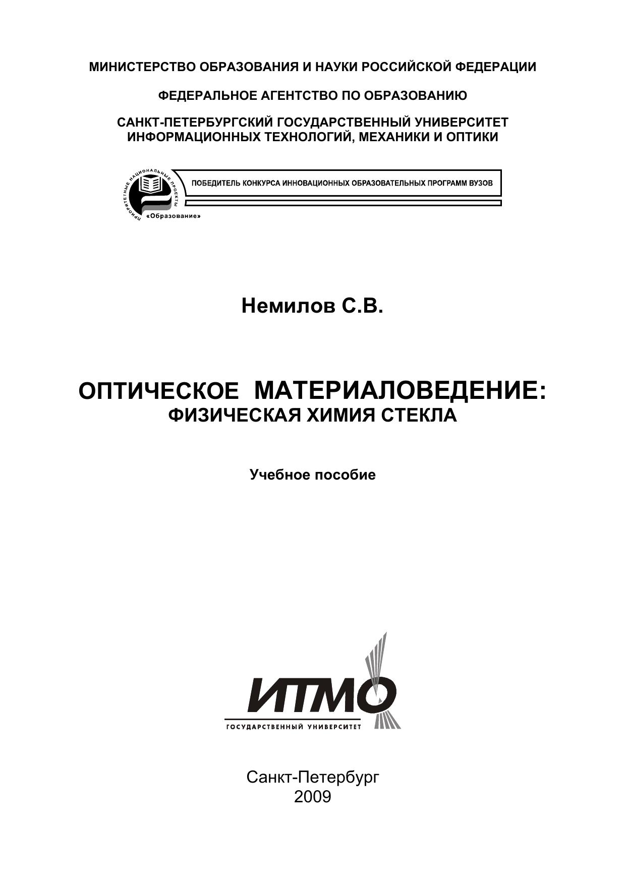 Оптическое материаловедение: Физическая химия стекла. Учебное пособие, курс лекций