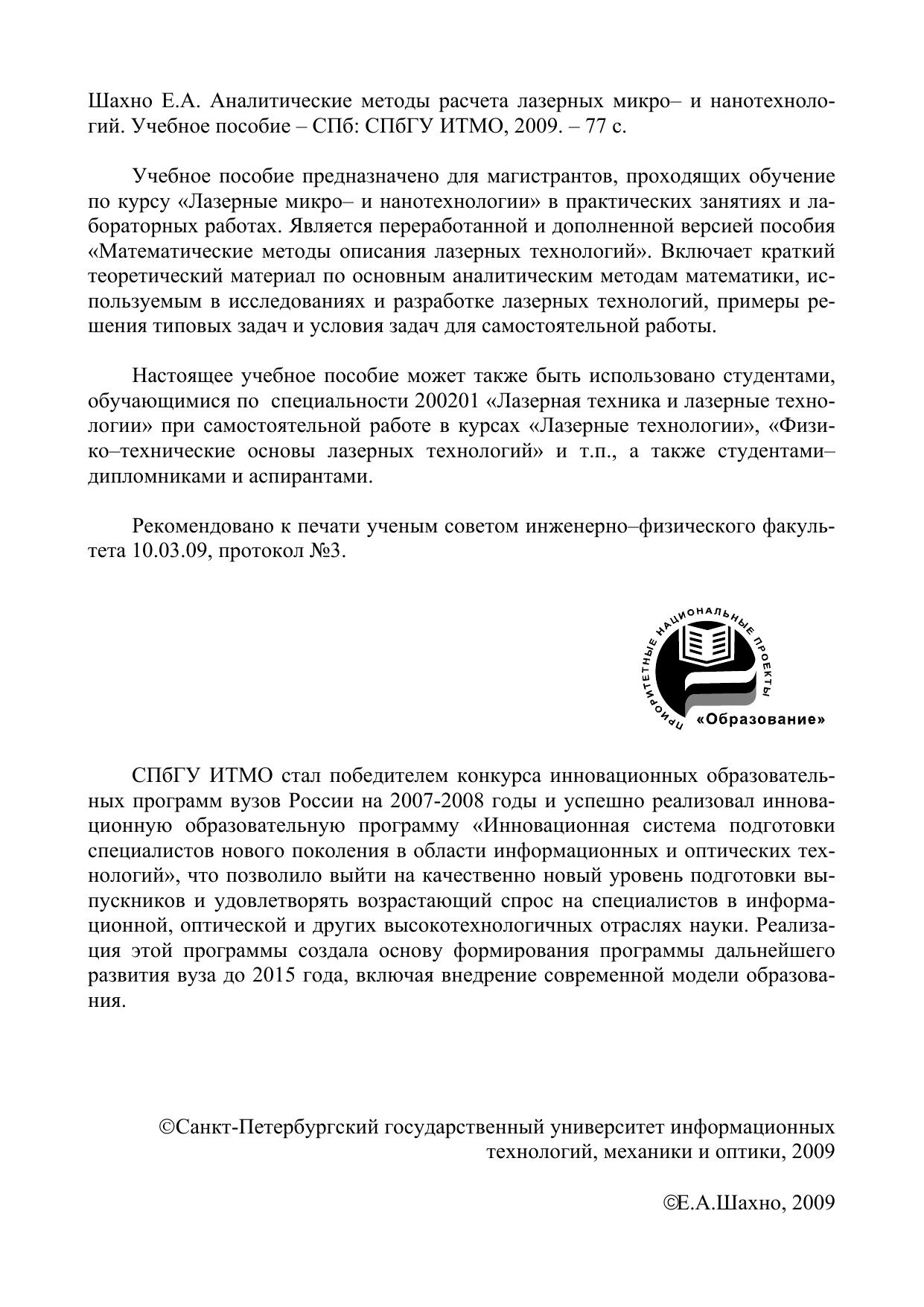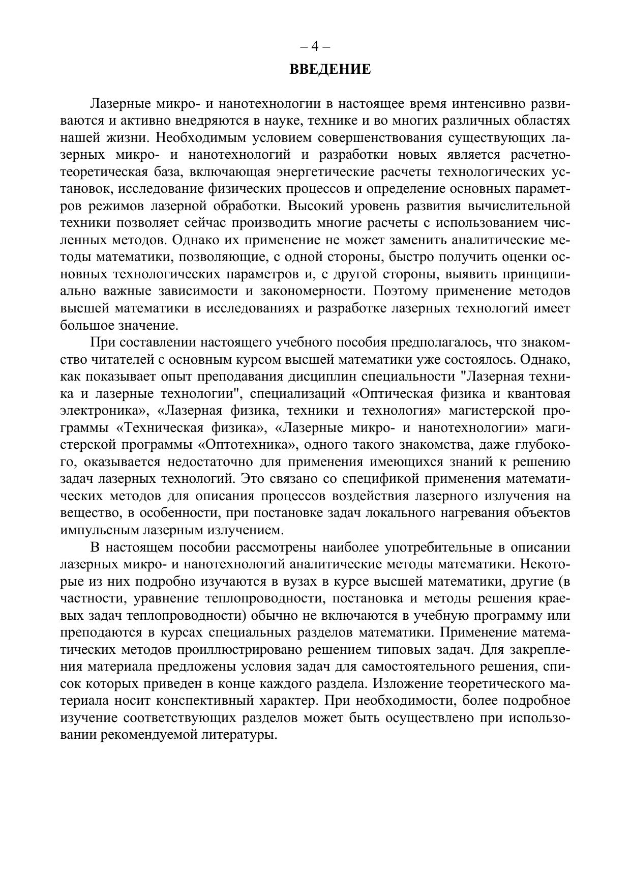 Аналитические методы расчета лазерных микро– и нанотехнологий