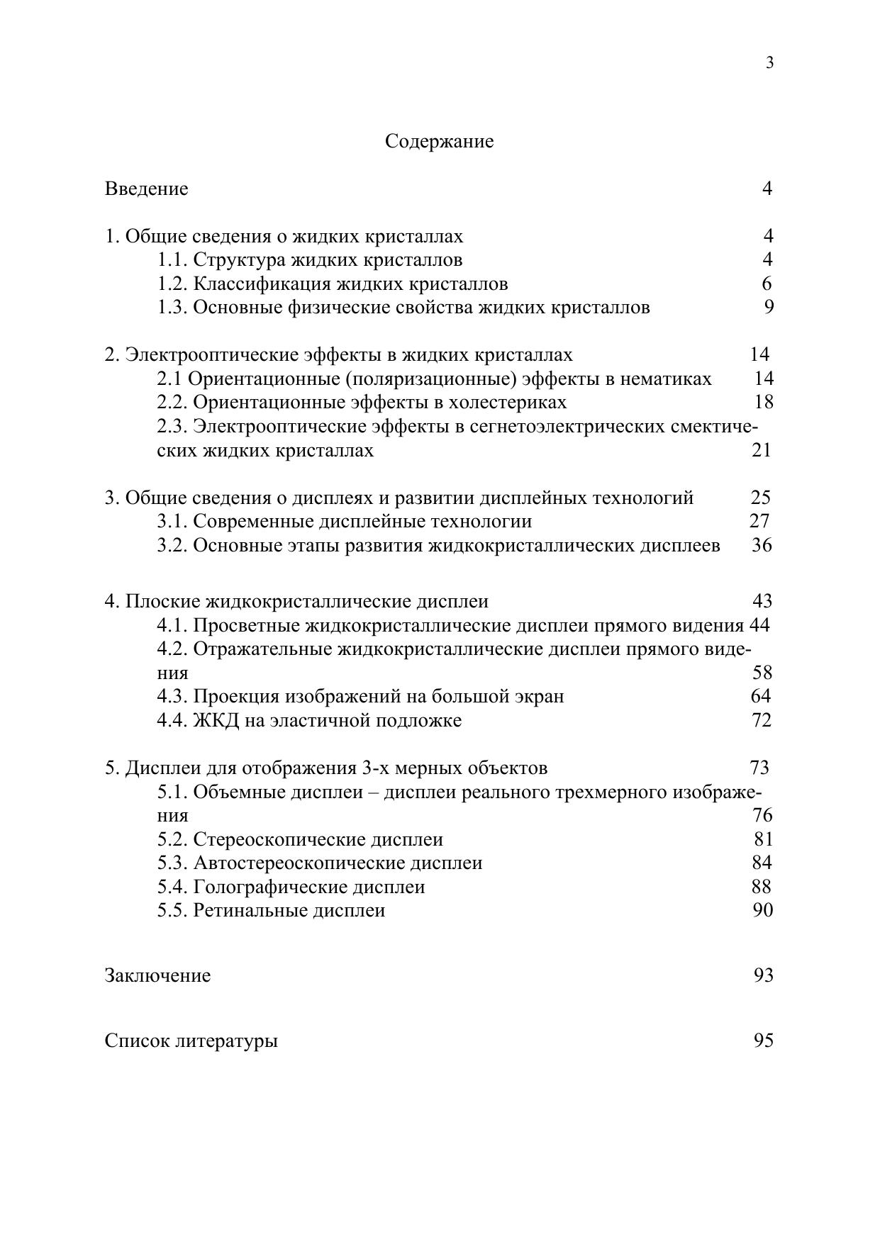 Описаны современные дисплейные технологии, дан анализ систем отображения информации и основных этапов развития жидкокристаллических дисплеев. Рассмотрены различные типы дисплеев на жидких кристаллах: просветные и отражательные дисплеи прямого видения; проекционные; дисплеи на эластичной подложке. Обсуждены дисплеи для отображения 3-х мерных объектов: дисплеи реального трехмерного изображения; стереоскопические, автостереоскопические, голографические и ретинальные дисплеи. Приведены их основные характеристики: контрастное отношение, углы обзора, времена переключения. Рассмотрены перспективы развития дисплеев на жидких кристаллах.