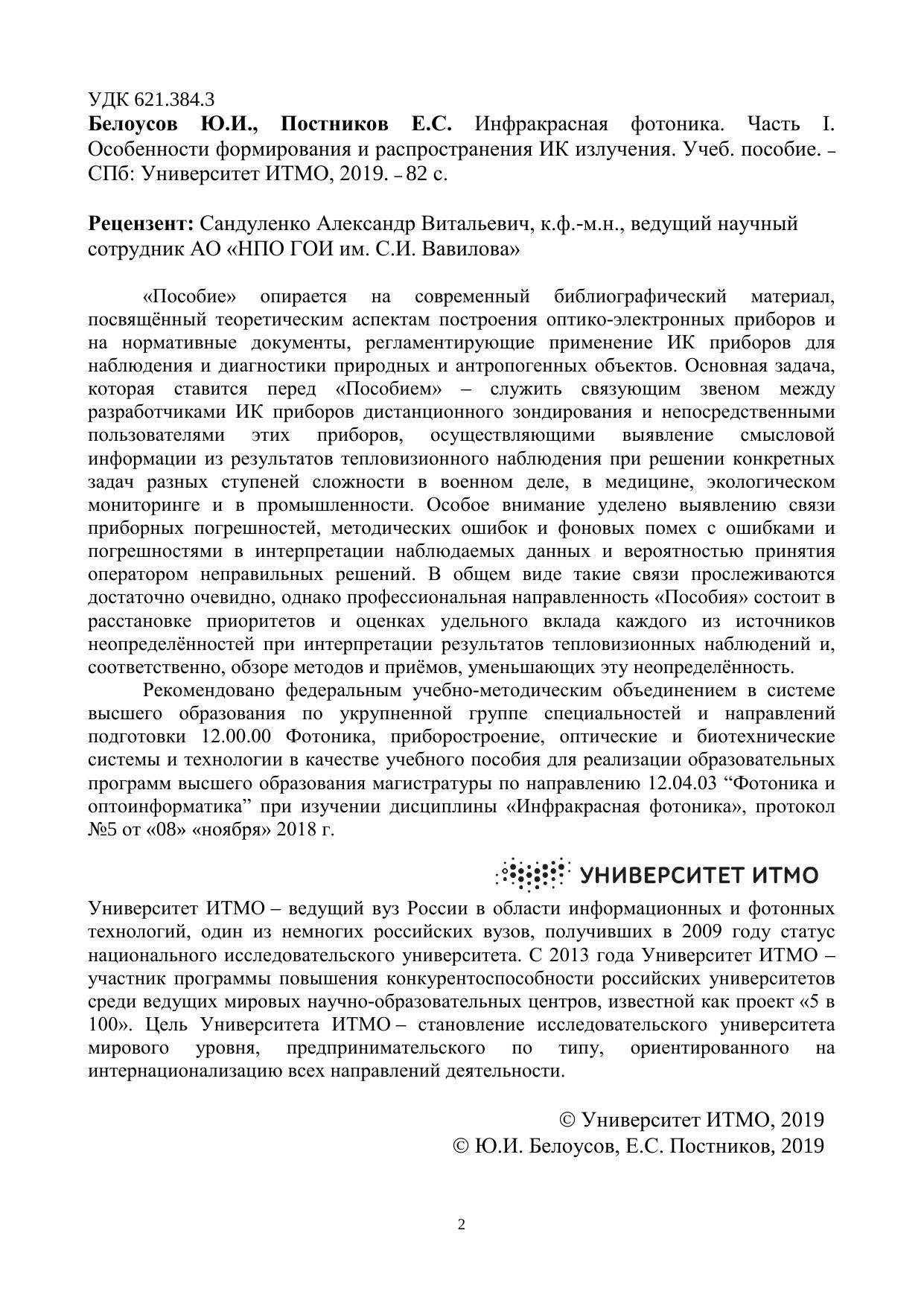 высшего образования по укрупненной группе специальностей и направлений подготовки 12.00.00 Фотоника, приборостроение, оптические и биотехнические системы и технологии в качестве учебного пособия для реализации образовательных