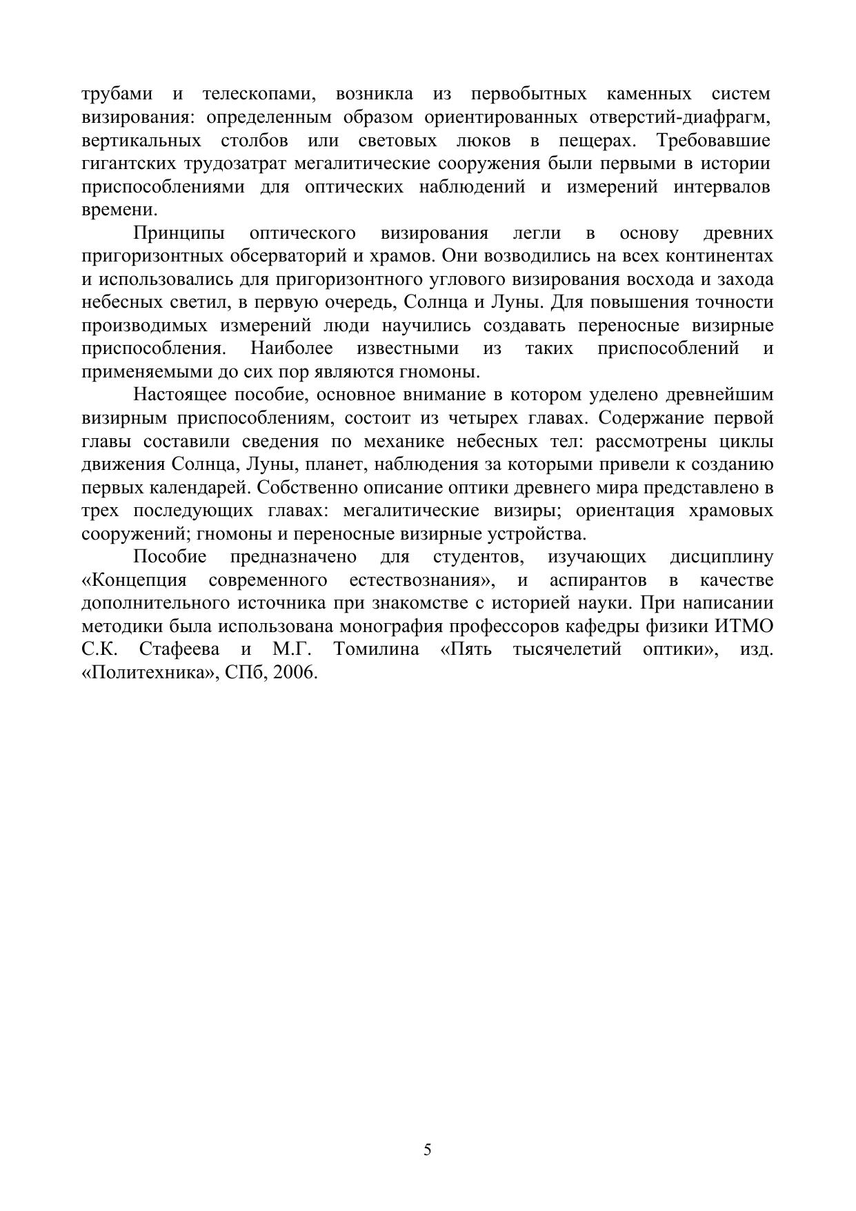 Пособие содержит сведения по истории оптики до античного периода. Приведено описание древнейших визирных систем, созданных человечеством для наблюдения за небесными объектами. Рассмотрены ориентационные особенности археологических памятников, мегалитических сооружений, древних храмов и пригоризонтных обсерваторий. Приведены сведения об устройстве первого оптического прибора для ориентации в пространстве и во времени – гномона. Учебное пособие адресовано аспирантам, изучающим дисциплину «История и философия науки», а также студентам гуманитарных специальностей и студентам, обучающимся по направлению подготовки 080700 в качестве дополнительной литературы по дисциплине «Концепции современного естествознания».