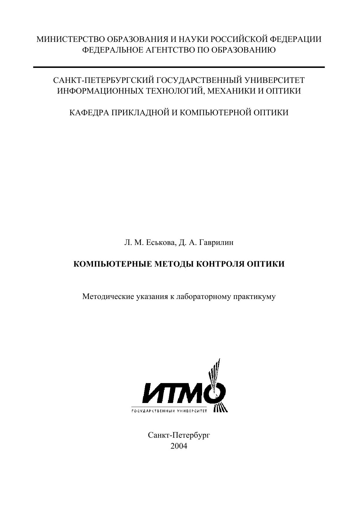В методических указаниях рассматриваются методы исследования качества изображения оптических систем, отличающиеся использованиемкомпьютеризированных приборов и установок. Приводятся описания лабораторных установок, даются рекомендации по выполнению лабораторных работ, описываются особенности программ проведения измерений и обработки результатов измерений и даются указания по их использованию. Пособие предназначено для студентов оптических специальностей, изучающих методы исследования оптических систем. Методические указания к лабораторному практикуму подготовлены на кафедре Прикладной и компьютерной оптики Санкт-Петербургского государственного университета информационных технологий, механики и оптики.