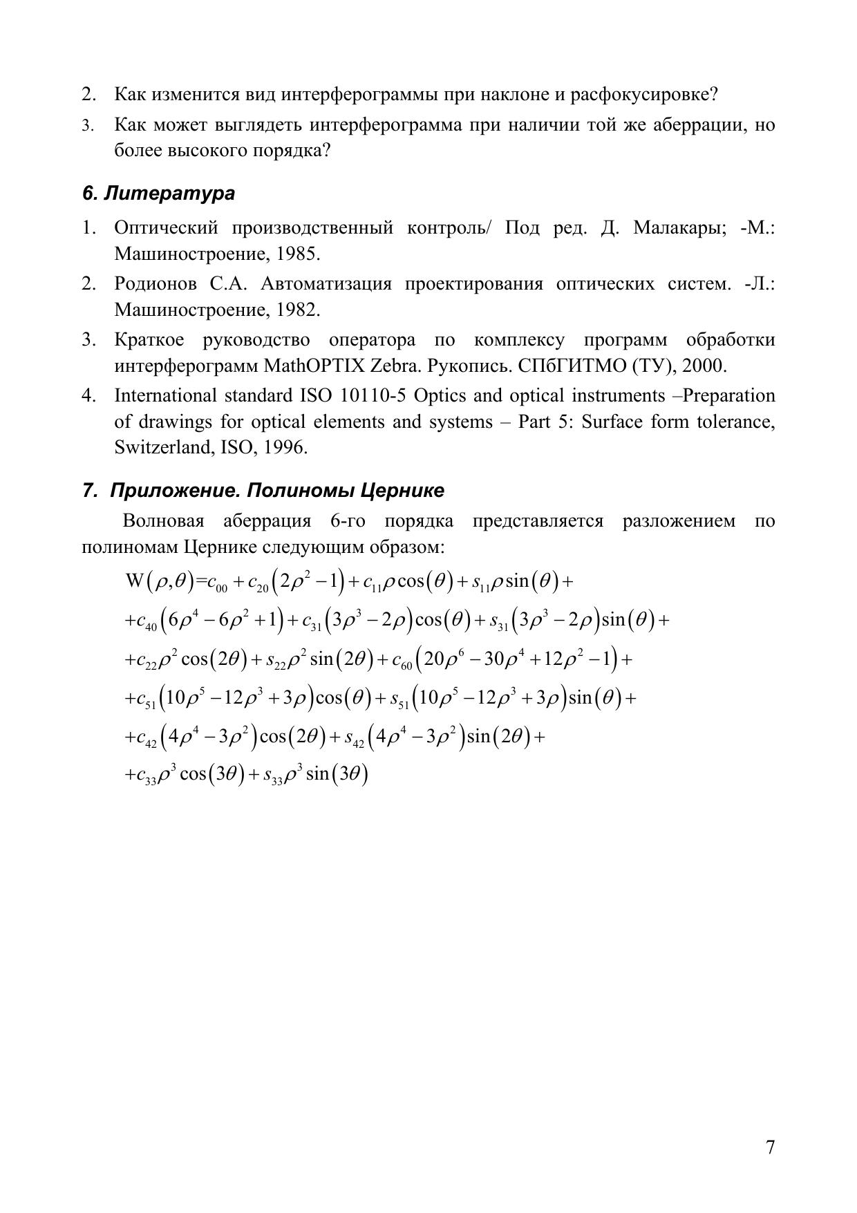 Компьютерные методы контроля оптики. Методические указания к лабораторному практикуму