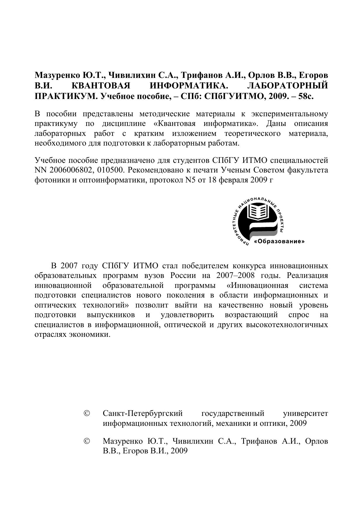 Издательство: НИУ ИТМО (Санкт-Петербургский национальный исследовательский университет информационных технологий, механики и оптики)