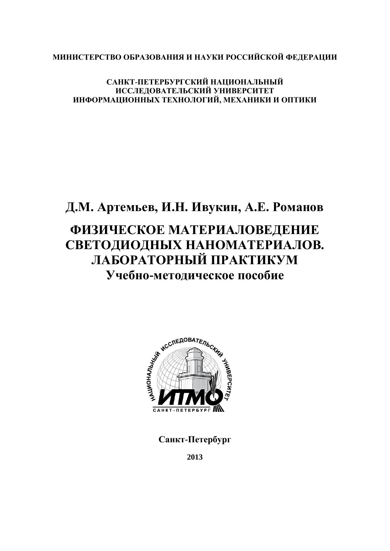 Лабораторный практикум к курсу Физическое материаловедение светодиодных наноматериалов