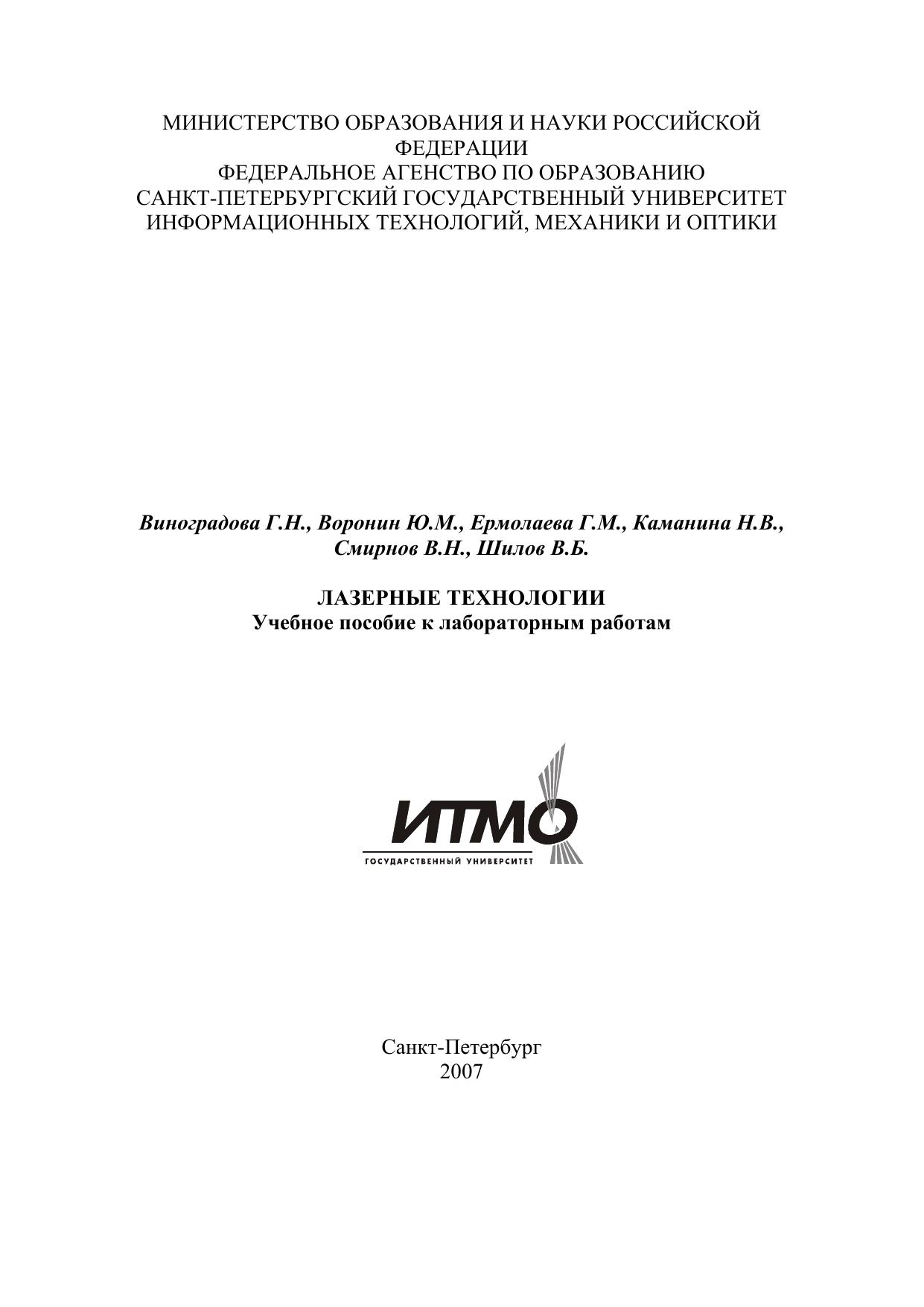 Лазерные технологии. Учебное пособие к лабораторным работам